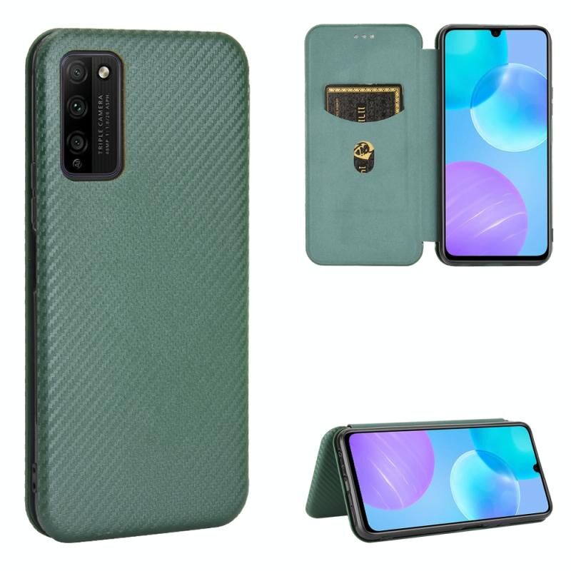 Για Huawei Honor 30 Youth Carbon Fiber υφή οριζόντια Flip TPU + PC + PU δέρμα υπόθεση με υποδοχή κάρτας (πράσινο)