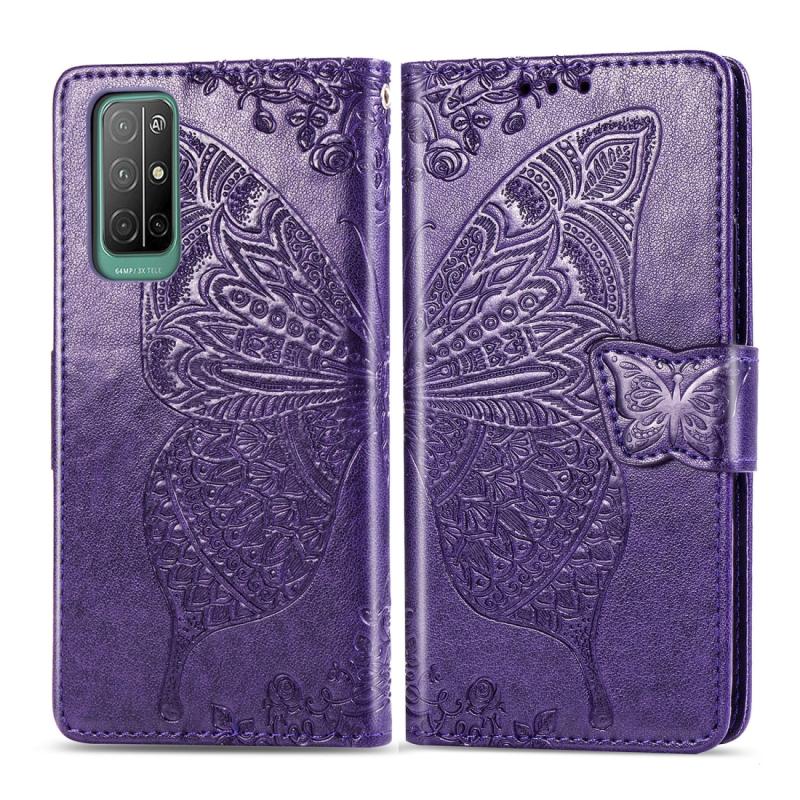 For Huawei Honor 30S Butterfly Love Flower Embossed Horizontal Flip Leather Case with Bracket / Card Slot / Wallet / Lanyard(Dark Purple)