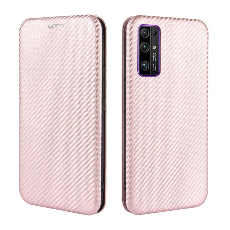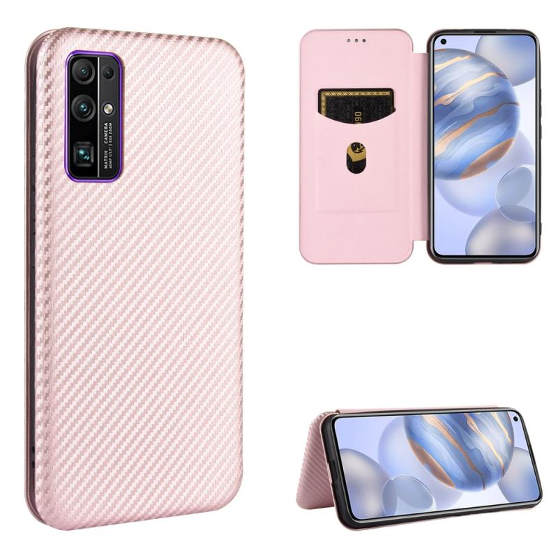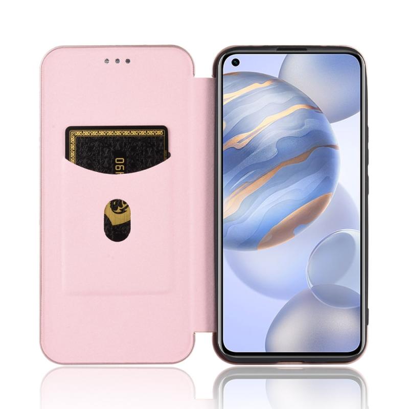 For Huawei Honor 30S Carbon Fiber Texture Horizontal Flip TPU + PC + PU Leather Case with Card Slot(Pink)