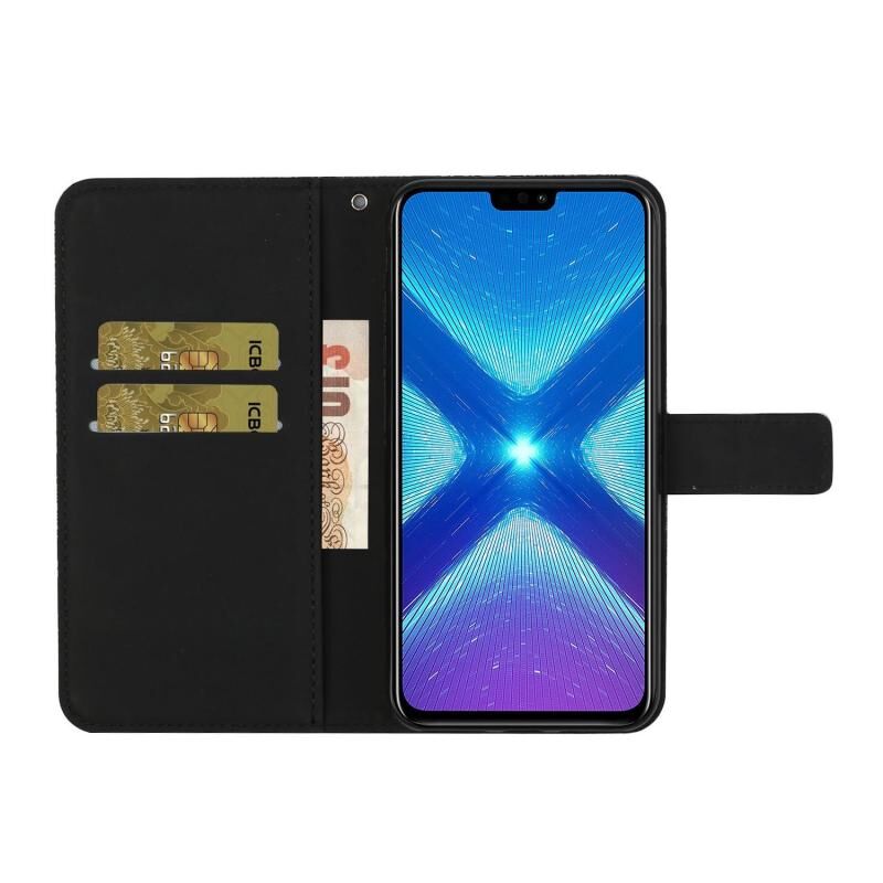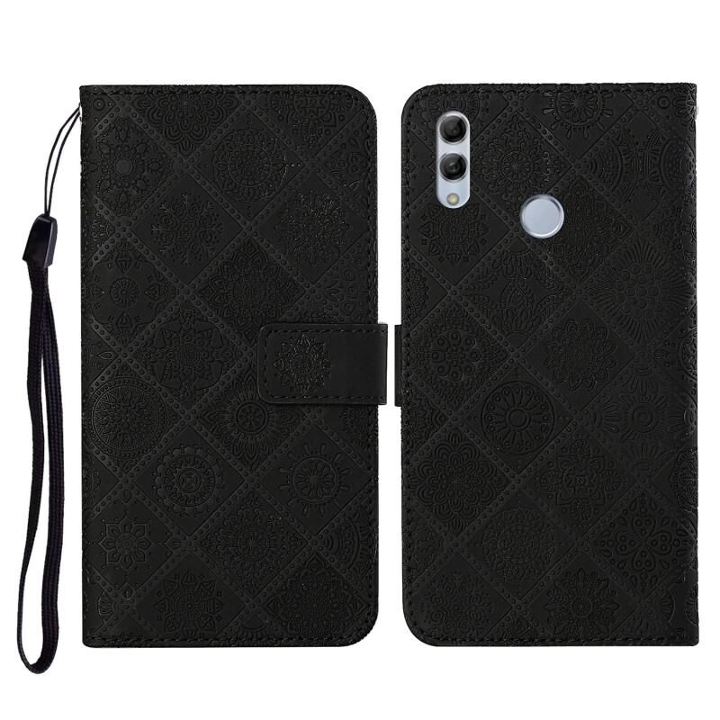 Για Huawei Honor 8X Ethnic Style ανάγλυφο μοτίβο οριζόντια Flip δερμάτινη θήκη με κάτοχο & υποδοχές για κάρτες & πορτοφόλι & κορδόνι (μαύρο)