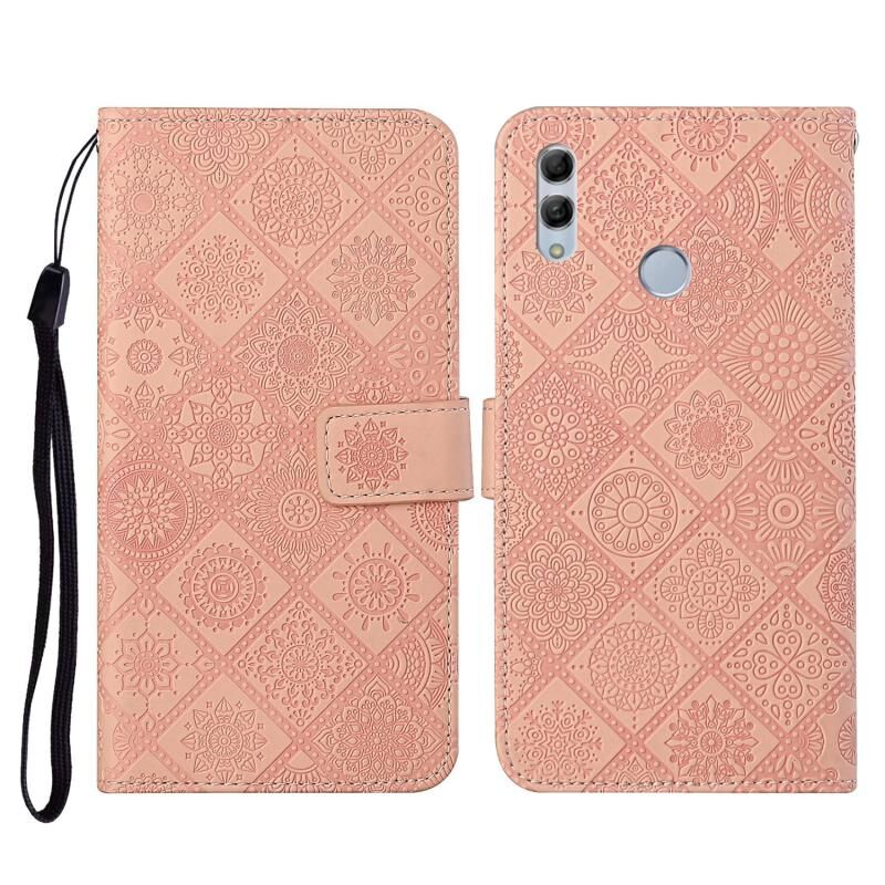 Για Huawei Honor 8X Ethnic Style ανάγλυφο μοτίβο οριζόντια Flip δερμάτινη θήκη με κάτοχο & υποδοχές για κάρτες & πορτοφόλι & κορδόνι (ροζ)