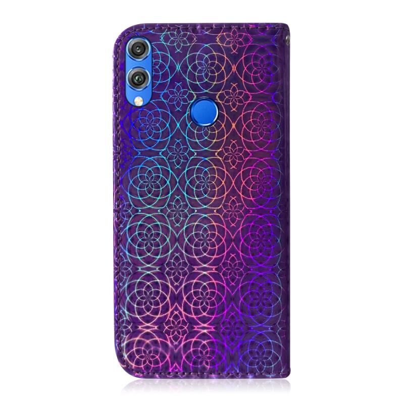Για Huawei Honor 8X Αμιγές χρώμα πολύχρωμο μαγνητικό πόρπη οριζόντια Flip PU δέρμα υπόθεση με κάτοχο & υποδοχές για κάρτες & πορτοφόλι & Lanyard (μωβ)