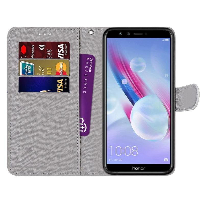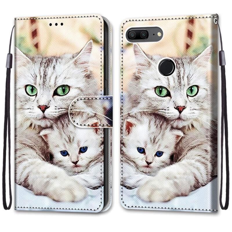 Θήκη Huawei Honor 9 Lite με πολύχρωμο σχέδιο, υφή σταυρού, οριζόντια αναδίπλωση από δερματίνη PU με βάση στήριξης, θήκες για κάρτες, πορτοφόλι & λουρί (Μεγάλη γάτα που κρατάει γατάκι)