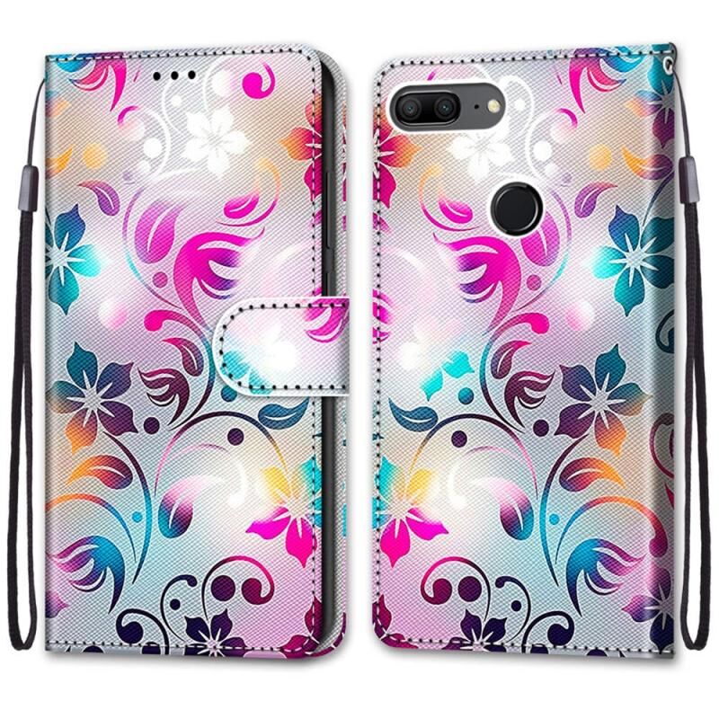 Θήκη Huawei Honor 9 Lite με πολύχρωμο σχέδιο, υφή σταυρού, οριζόντια αναδίπλωση από δερματίνη PU με βάση, θήκες για κάρτες, πορτοφόλι & λουρί (Διαβαθμισμένο πολύχρωμο λουλούδι)