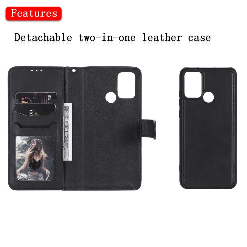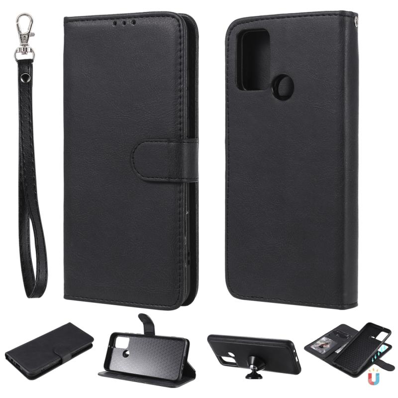 For Huawei Honor 9A 2 in 1 Solid Color Detachable PU Leather Case with Card Slots & Magnetic Holder & Photo Frame & Wallet & Strap(Black)