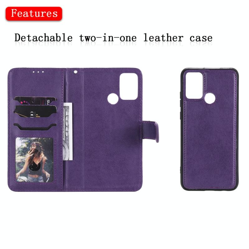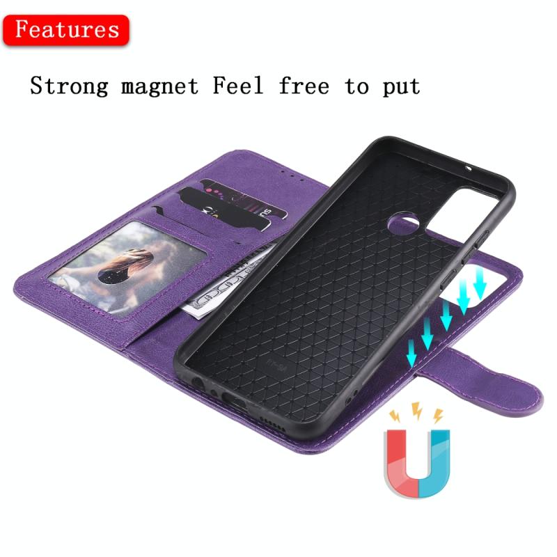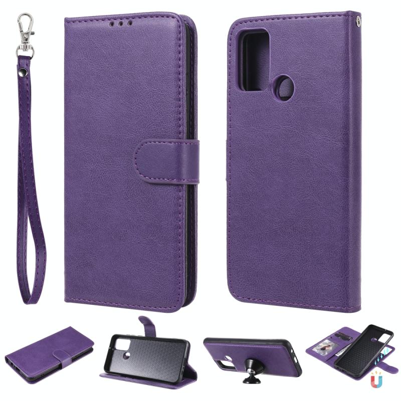 For Huawei Honor 9A 2 in 1 Solid Color Detachable PU Leather Case with Card Slots & Magnetic Holder & Photo Frame & Wallet & Strap(Purple)