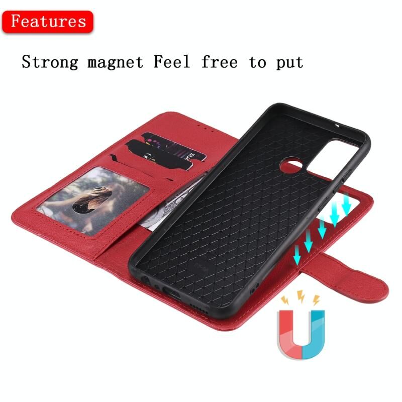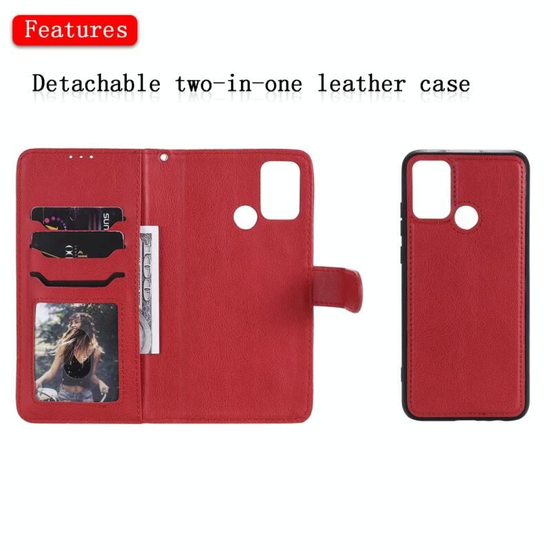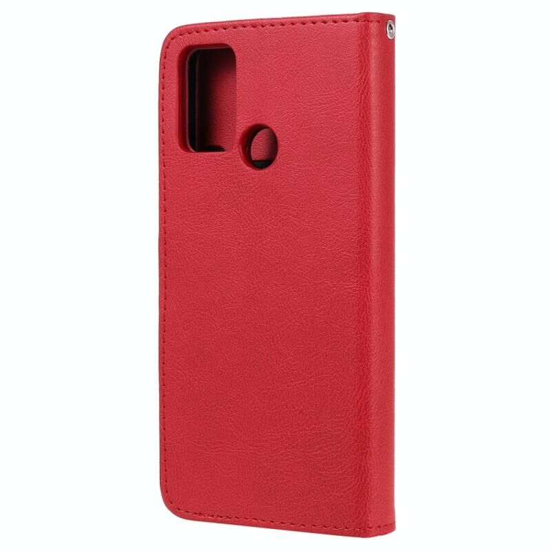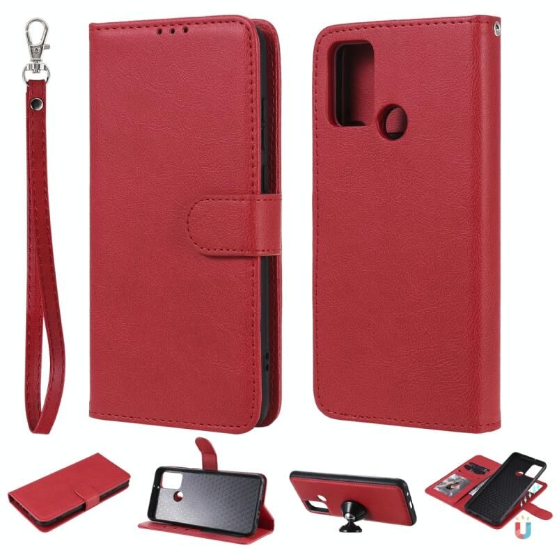For Huawei Honor 9A 2 in 1 Solid Color Detachable PU Leather Case with Card Slots & Magnetic Holder & Photo Frame & Wallet & Strap(Red)