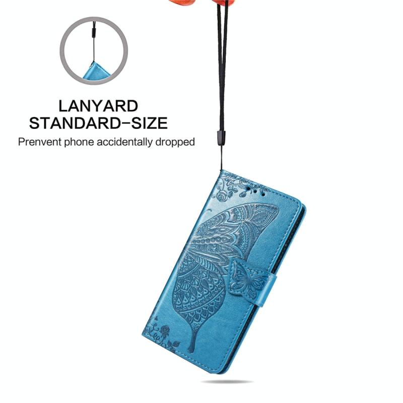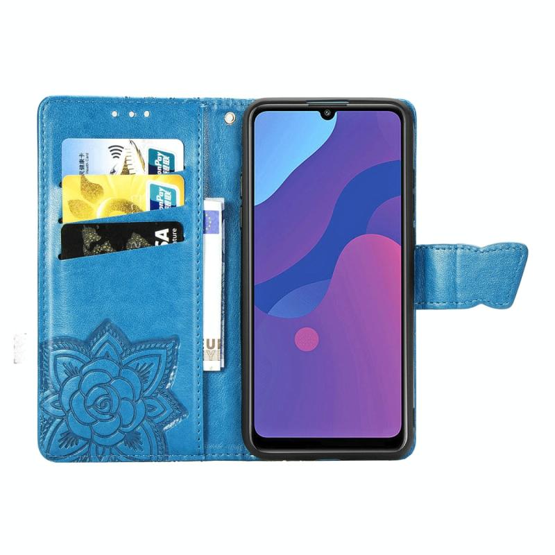 For Huawei Honor 9A Butterfly Love Flower Embossed Horizontal Flip Leather Case with Bracket / Card Slot / Wallet / Lanyard(Blue)