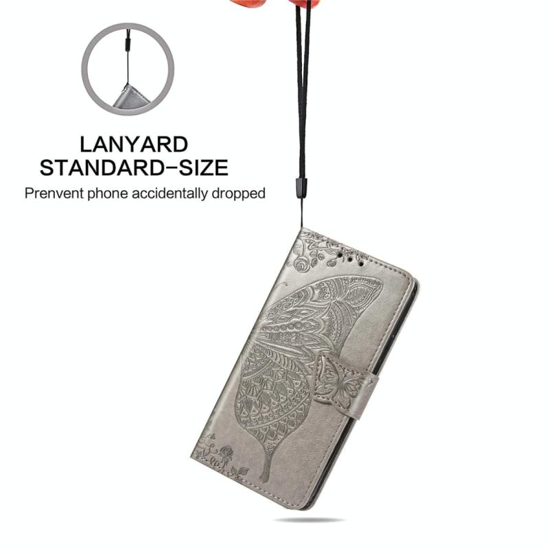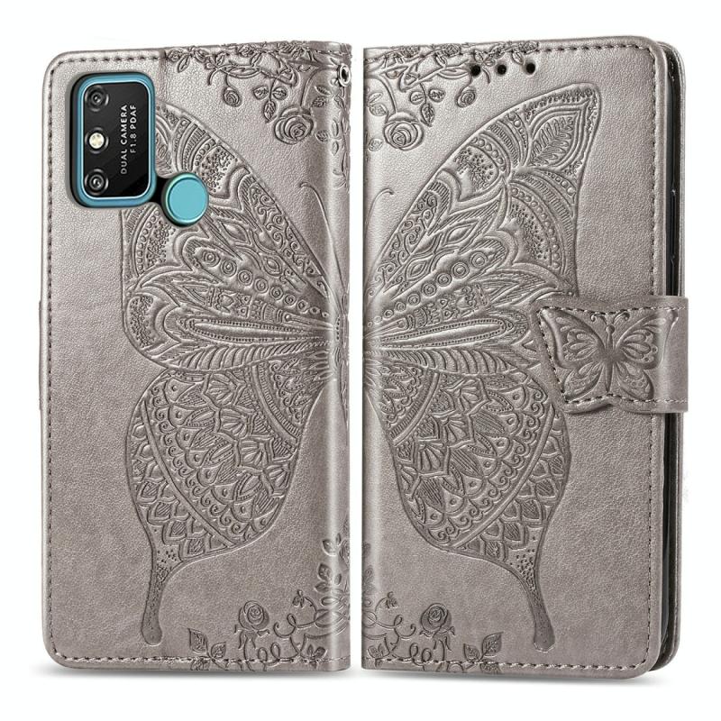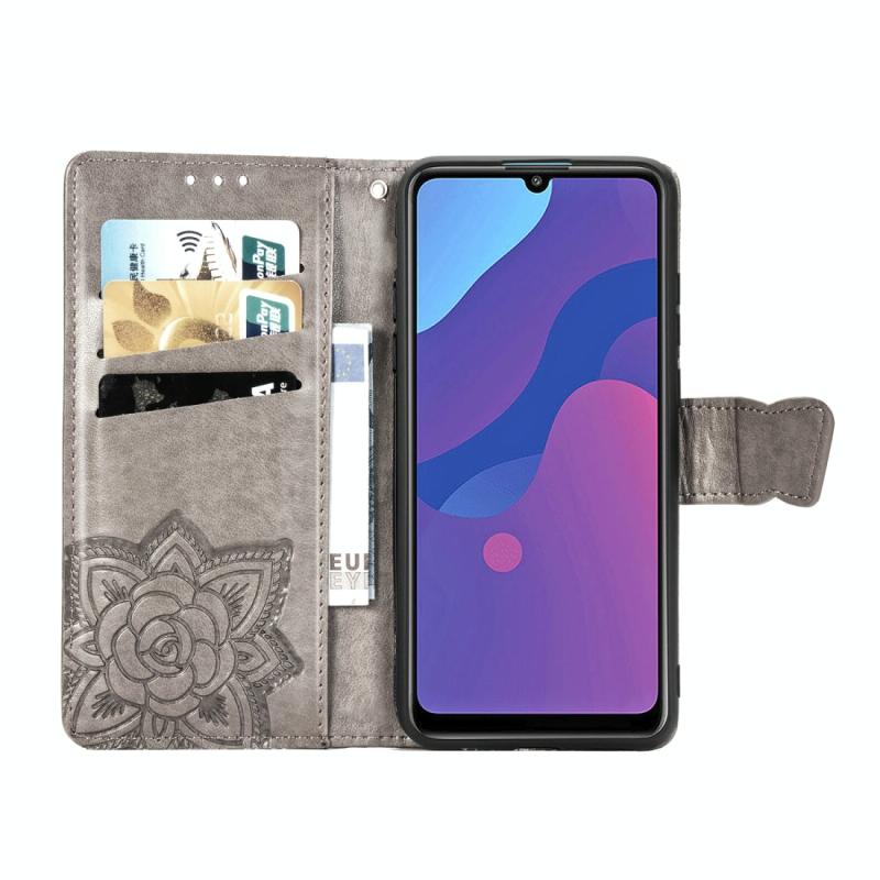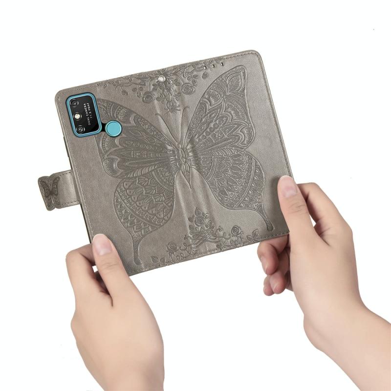 For Huawei Honor 9A Butterfly Love Flower Embossed Horizontal Flip Leather Case with Bracket / Card Slot / Wallet / Lanyard(Gray)
