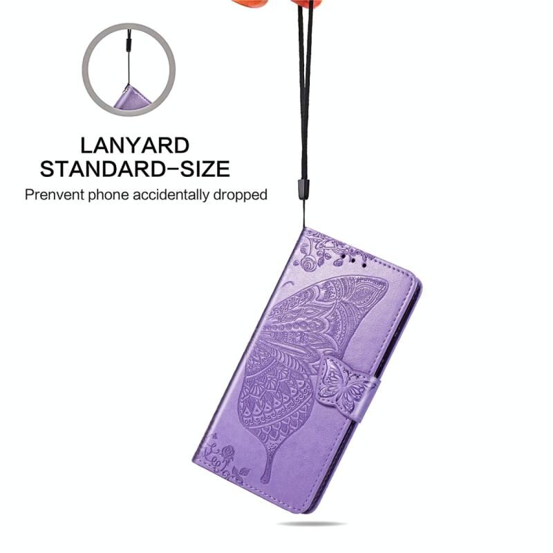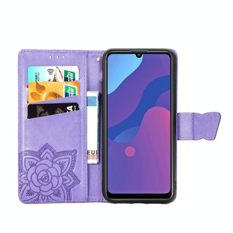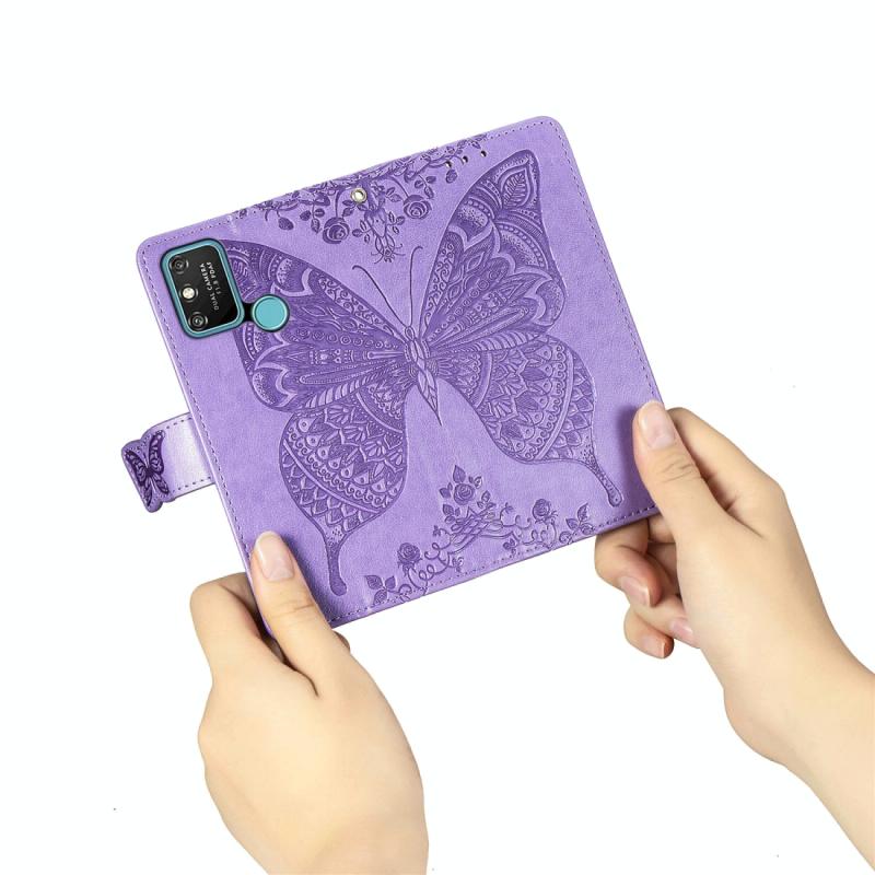 For Huawei Honor 9A Butterfly Love Flower Embossed Horizontal Flip Leather Case with Bracket / Card Slot / Wallet / Lanyard(Light Purple)