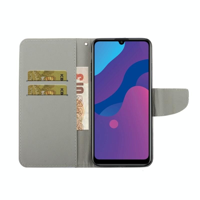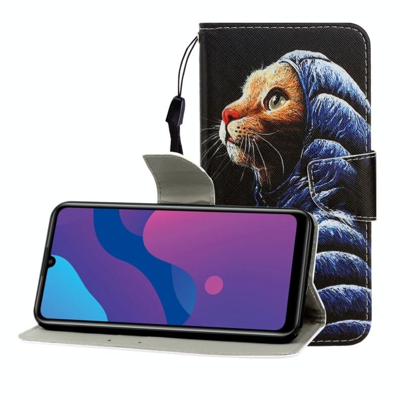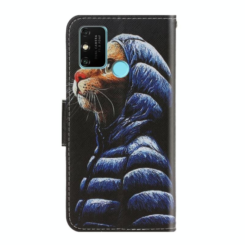 Θήκη Huawei Honor 9A με έγχρωμο σχέδιο, οριζόντια αναδιπλούμενη από δέρμα με βάση στήριξης & θήκη για κάρτες & πορτοφόλι (Γάτα με Χειμωνιάτικο Μπουφάν)