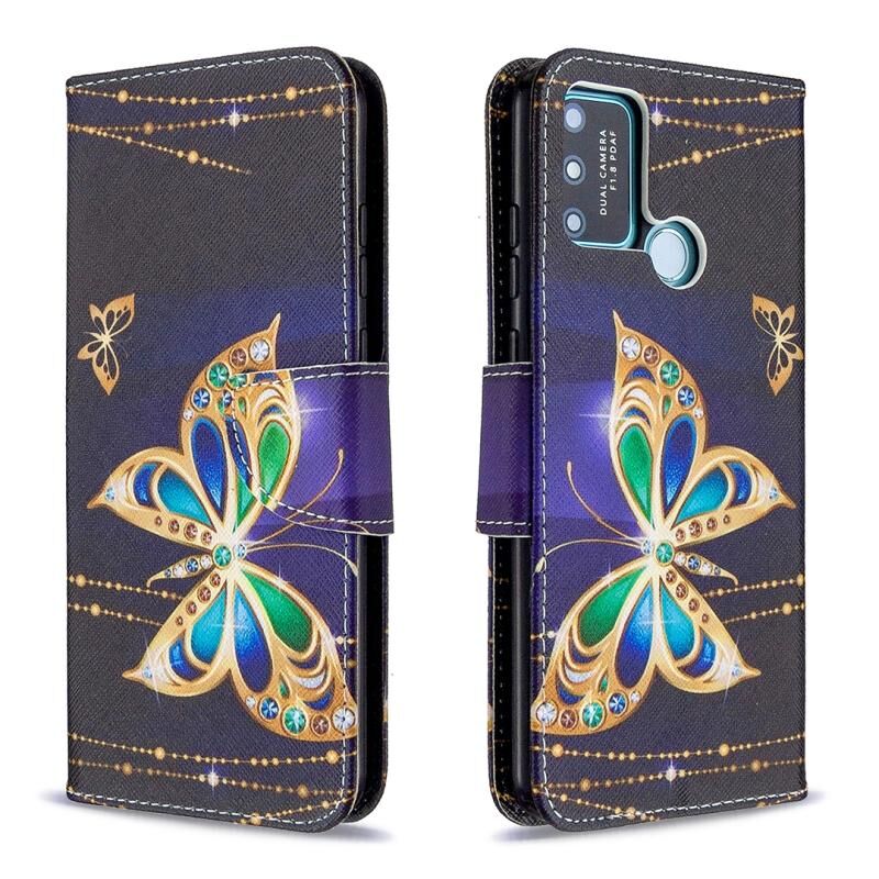 Θήκη Huawei Honor 9A με σχέδιο πολύχρωμης ζωγραφικής, οριζόντια αναδιπλούμενη από δέρμα με βάση στήριξης & υποδοχές καρτών & πορτοφόλι (Μεγάλη Πεταλούδα)