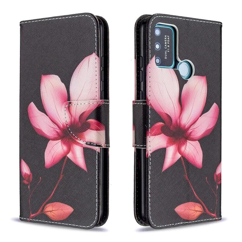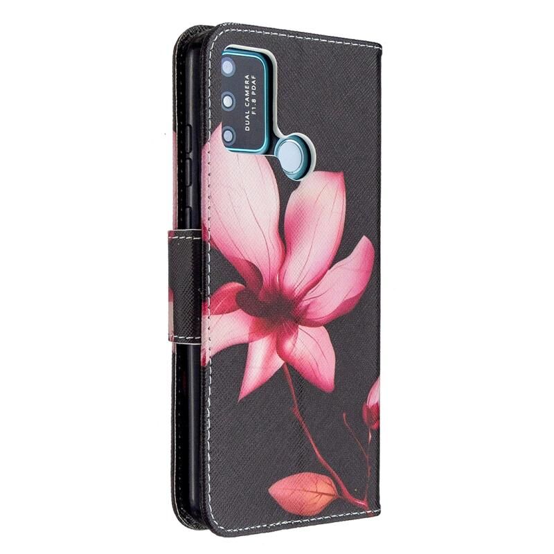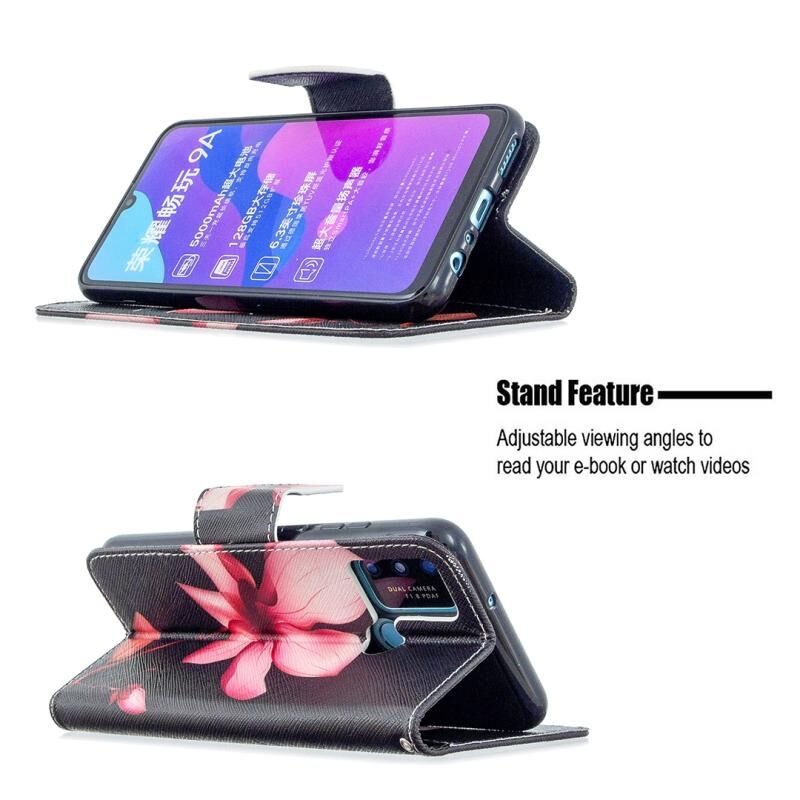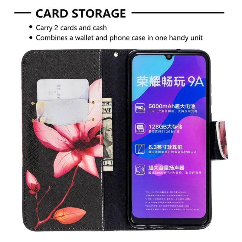 Θήκη Huawei Honor 9A με πολύχρωμο σχέδιο, οριζόντια αναδιπλούμενη από δέρμα με βάση στήριξης & θήκες για κάρτες & πορτοφόλι (Λωτός)