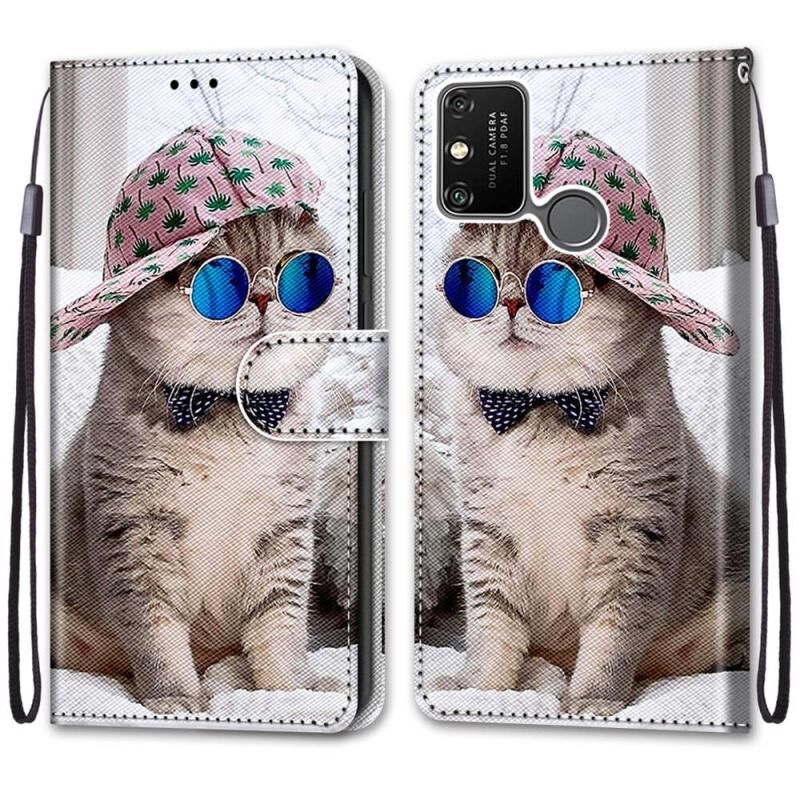 Θήκη Huawei Honor 9A με πολύχρωμο σχέδιο, υφή σταυρού, οριζόντια αναδίπλωση από δερματίνη PU με βάση στήριξης, θήκες για κάρτες, πορτοφόλι & λουρί (Πράσινο Λεμόνι)