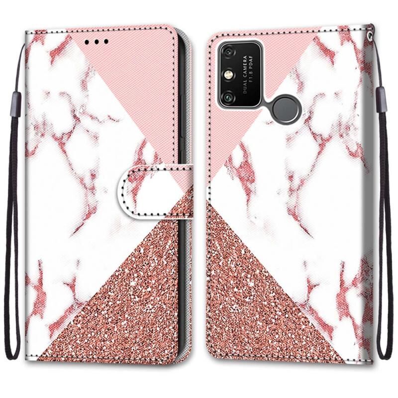 Θήκη Huawei Honor 9A με πολύχρωμο σχέδιο, υφή διασταυρούμενης υφής, οριζόντια αναδίπλωση από δερματίνη PU με βάση στήριξης & υποδοχές καρτών & πορτοφόλι & κορδόνι (Υφή πέτρας σε σκόνη)