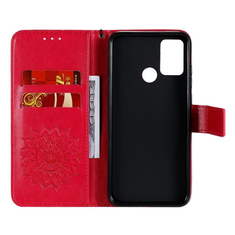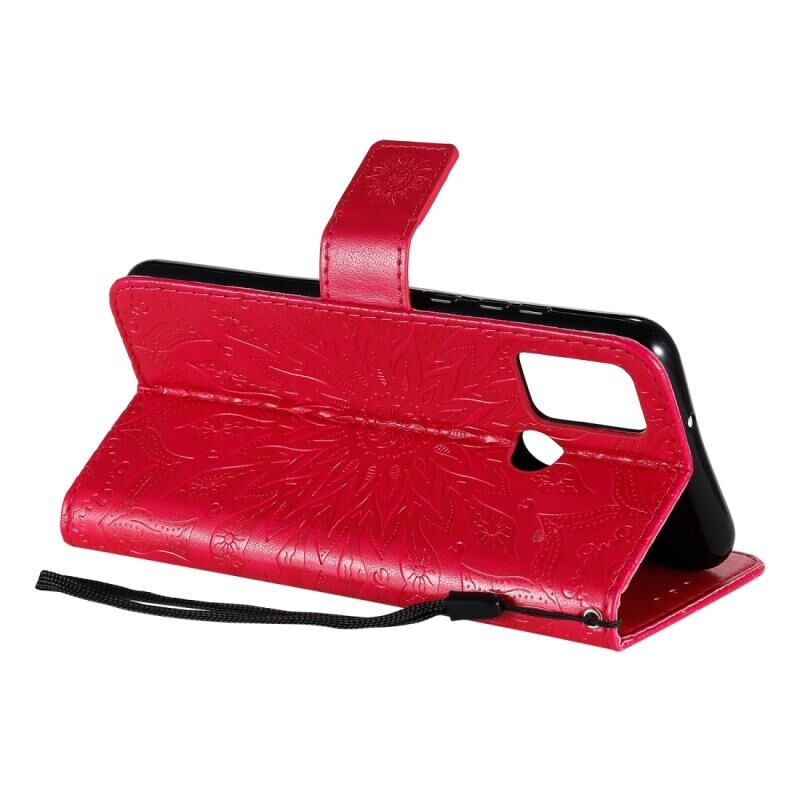 Για Huawei Honor 9A ανάγλυφο ηλιοτρόπιο μοτίβο οριζόντια Flip PU δέρμα υπόθεση με κάτοχο & υποδοχές για κάρτες & πορτοφόλι & Lanyard (κόκκινο)