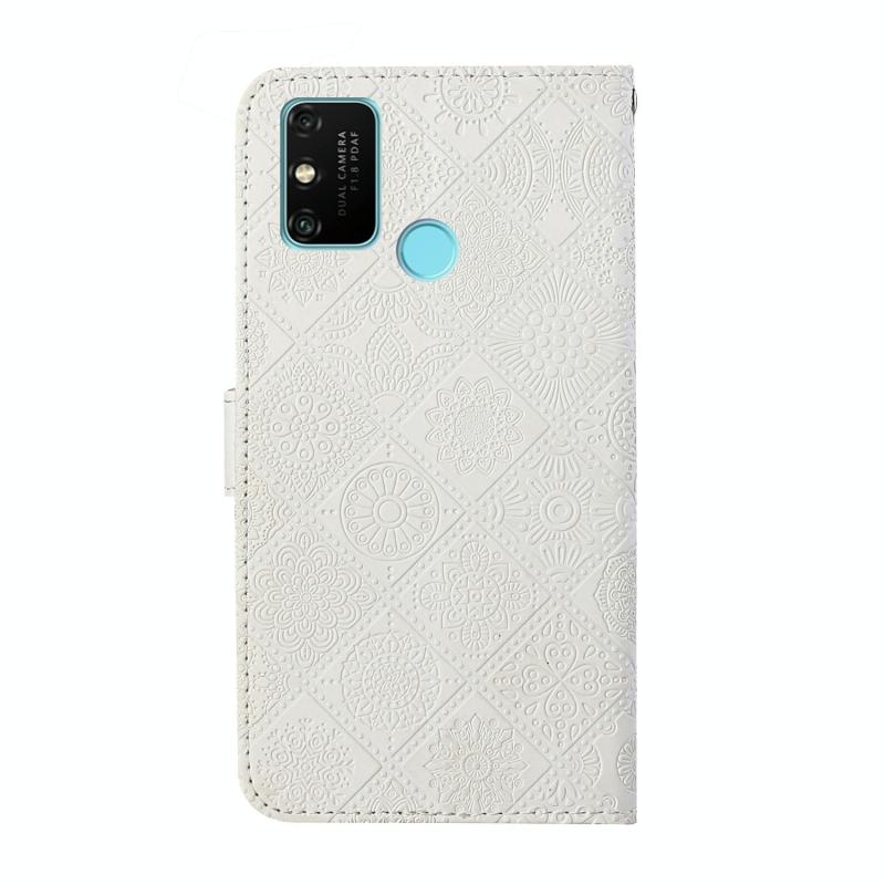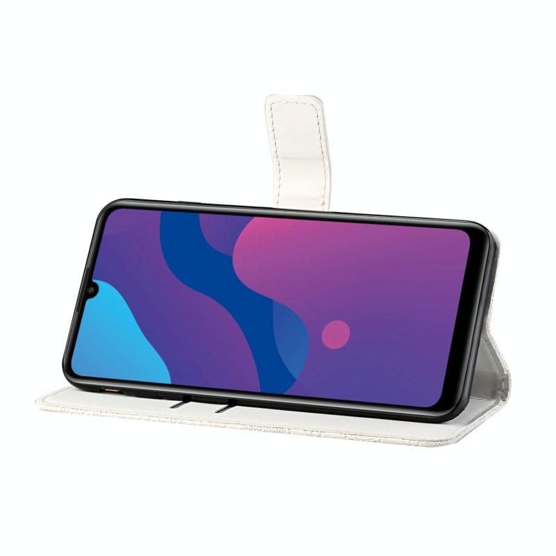 Θήκη Huawei Honor 9A, Δερμάτινη, Οριζόντια, με ανάγλυφο εθνοτικό σχέδιο, με βάση στήριξης, θήκες για κάρτες, πορτοφόλι & λουρί (Λευκό)