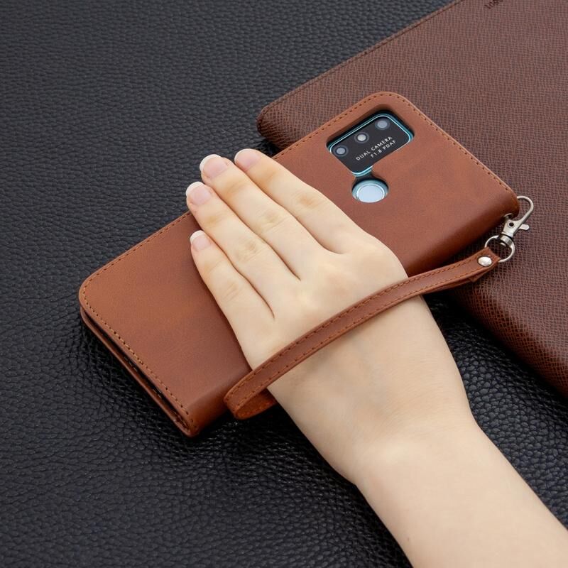 Για Huawei Honor 9A Ρετρό Lambskin υφή καθαρό χρώμα οριζόντια Flip PU δερμάτινη θήκη με κάτοχο & υποδοχές καρτών & πορτοφόλι & κορδόνι (καφέ)
