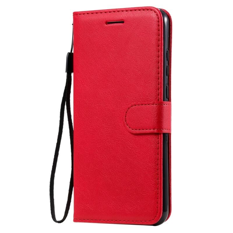 Θήκη δέρματος προστασίας οριζόντιας αναδίπλωσης για Huawei Honor 9A, μονόχρωμη, με βάση στήριξης, θήκες καρτών, πορτοφόλι και λουρί (Κόκκινο)
