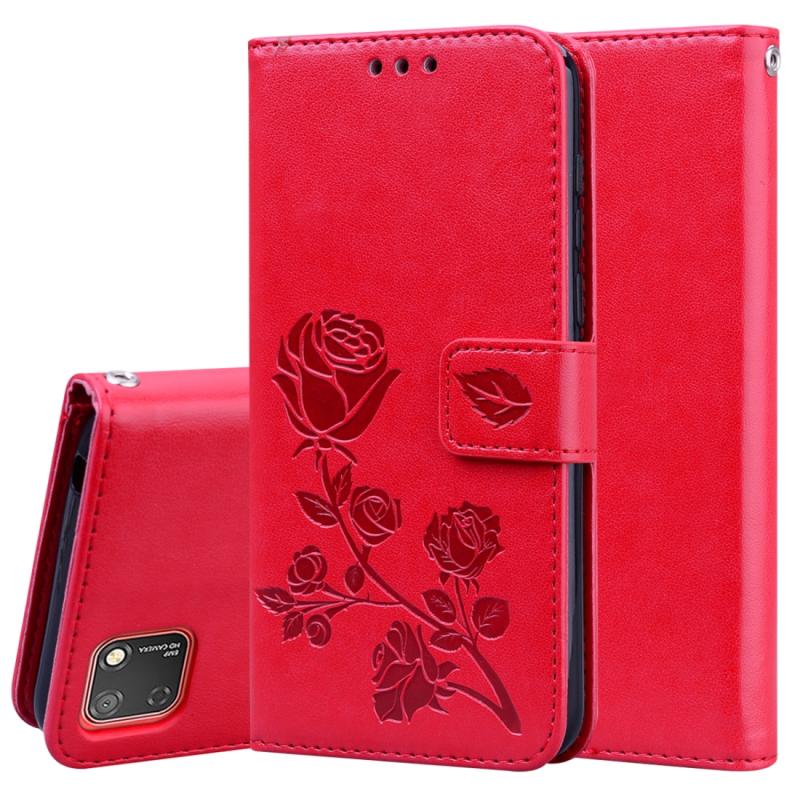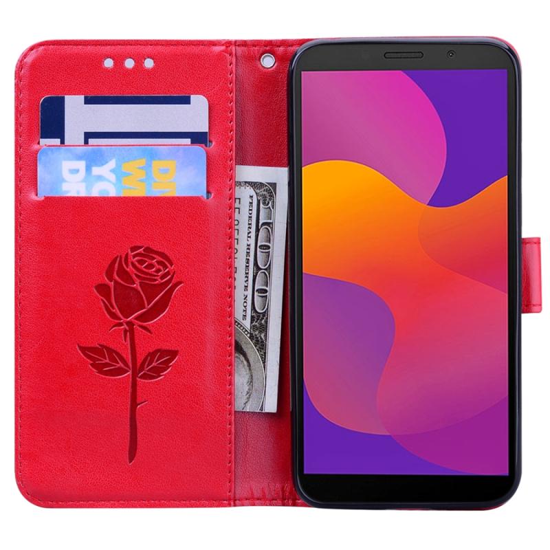 For Huawei Honor 9S Rose Embossed Horizontal Flip PU Leather Case with Holder & Card Slots & Wallet(Red)