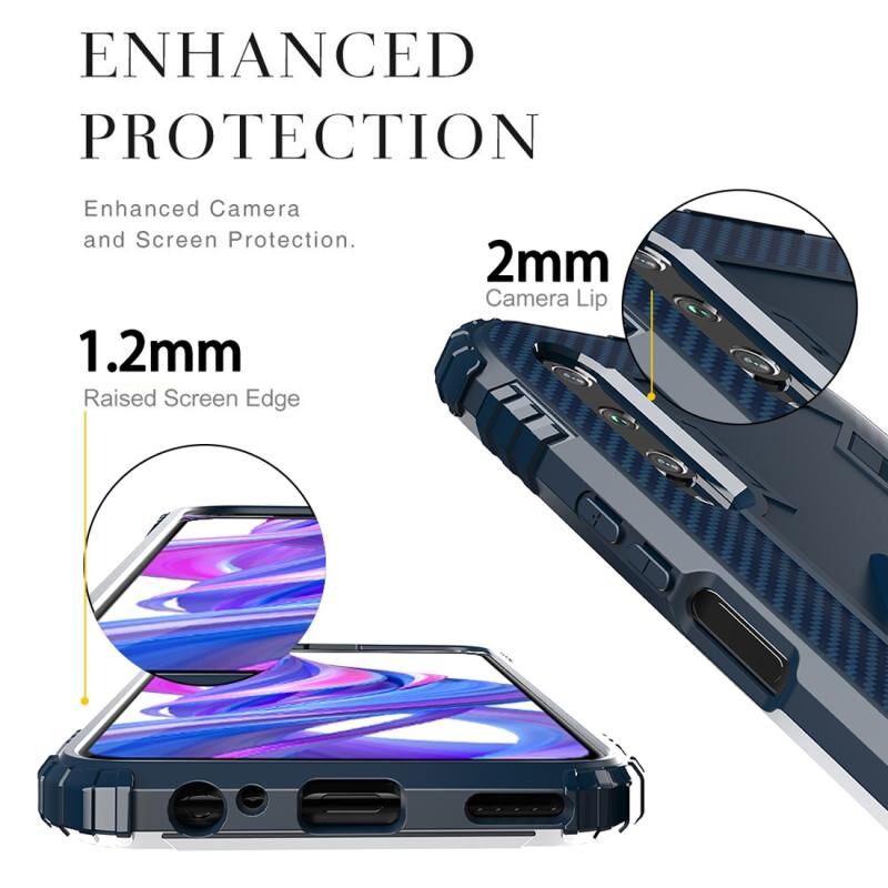Για Huawei Honor 9X / 9X Pro Carbon Fiber Προστατευτική θήκη με 360 μοίρες περιστρεφόμενο δαχτυλίδι κάτοχος (Μπλε)
