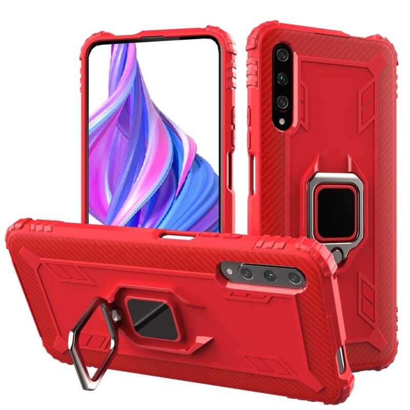 Για Huawei Honor 9X / 9X Pro Carbon Fiber Προστατευτική θήκη με 360 μοίρες περιστρεφόμενο δαχτυλίδι κάτοχος (Κόκκινο)
