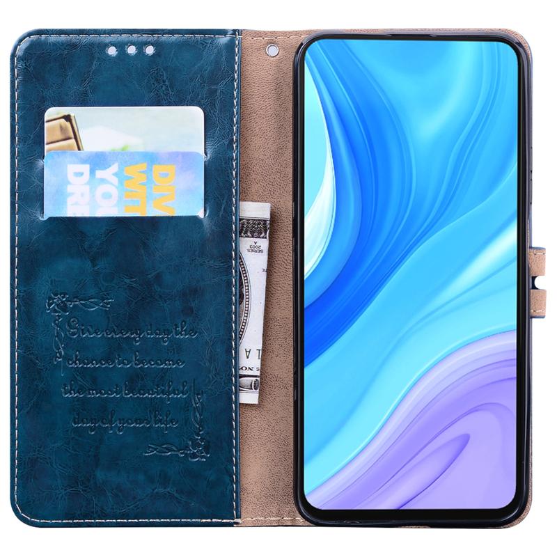 Για Huawei Honor 9X / 9X Pro / Y9s / P Smart Pro 2019, θήκη δέρματος οριζόντιας αναδίπλωσης με υφή λαδιού και κεριού, επαγγελματικού στυλ, με βάση στήριξης & υποδοχές καρτών & πορτοφόλι (Μπλε)