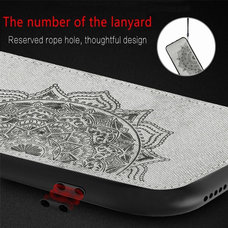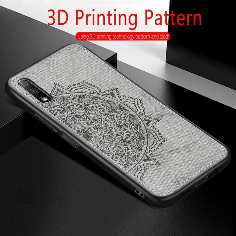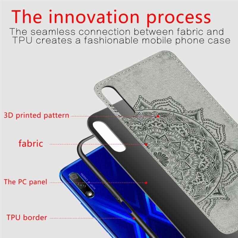 Θήκη κινητού Huawei Honor 9X με ανάγλυφο σχέδιο Mandala, κατασκευασμένη από PC + TPU + Ύφασμα, με κορδόνι & Μαγνητικό κούμπωμα (Γκρι)