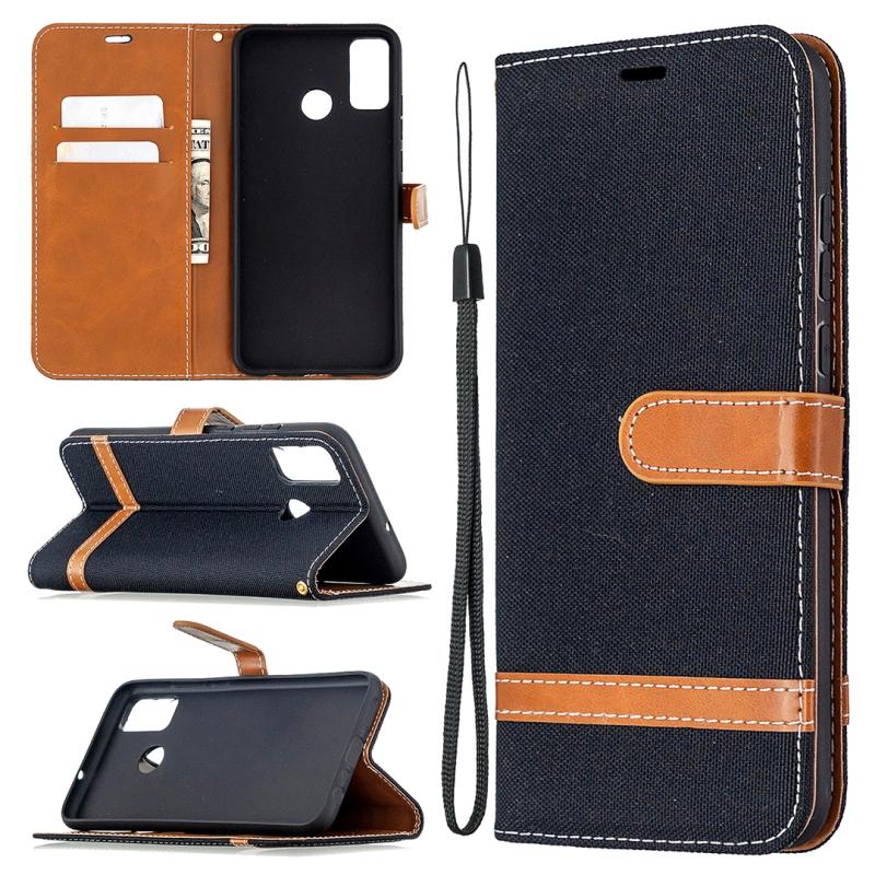 For Huawei Honor 9X Lite Color Matching Denim Texture Horizontal Flip Leather Case with Holder & Card Slots & Wallet & Lanyard(Black)