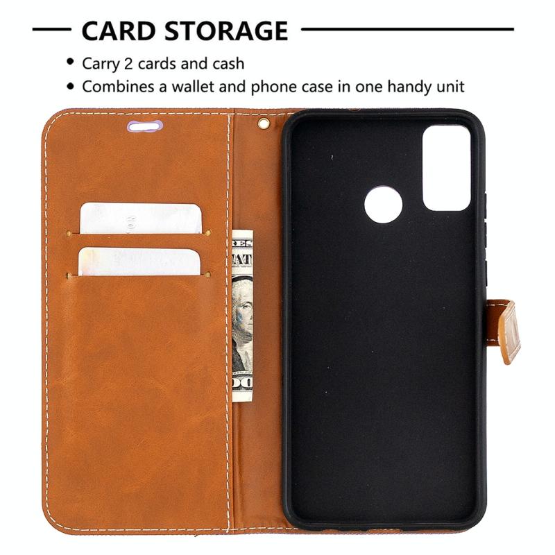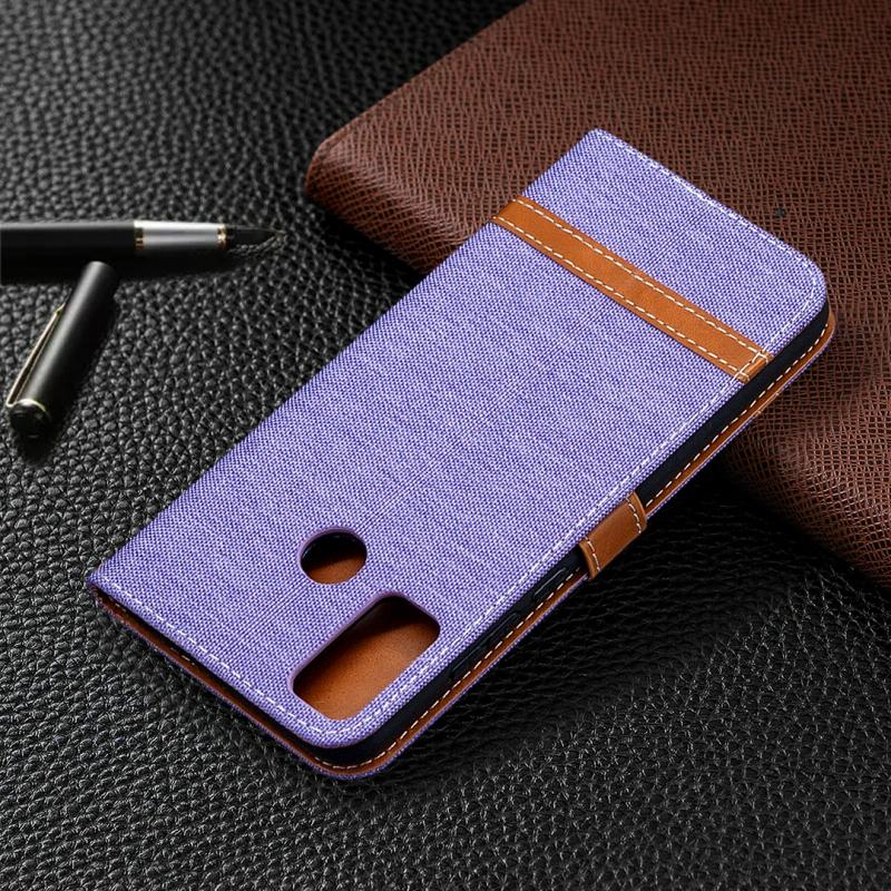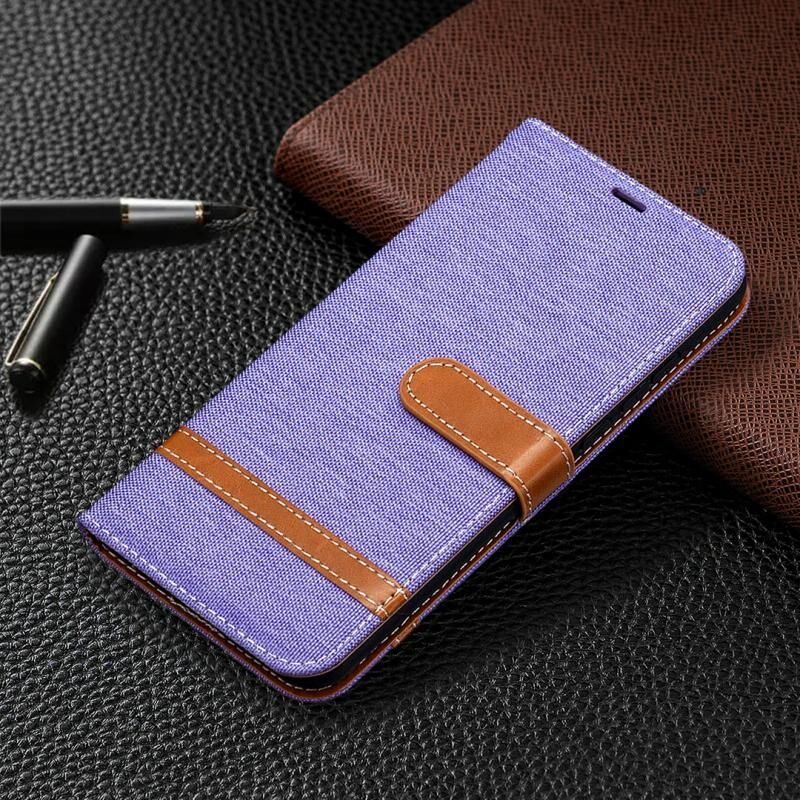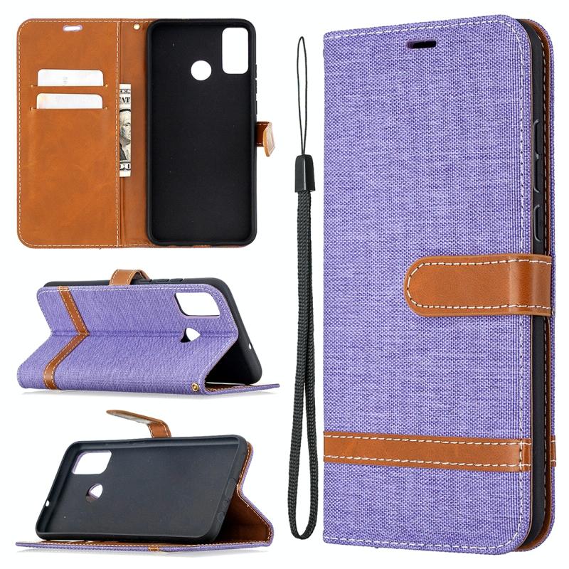 For Huawei Honor 9X Lite Color Matching Denim Texture Horizontal Flip Leather Case with Holder & Card Slots & Wallet & Lanyard(Purple)
