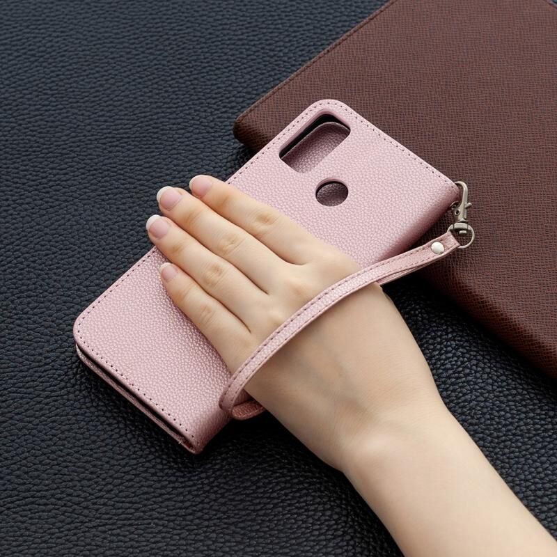Για Huawei Honor 9X Lite Litchi υφή καθαρό χρώμα οριζόντια Flip PU δέρμα υπόθεση με θήκη & υποδοχές για κάρτες & πορτοφόλι & Lanyard (Ροζ χρυσός)