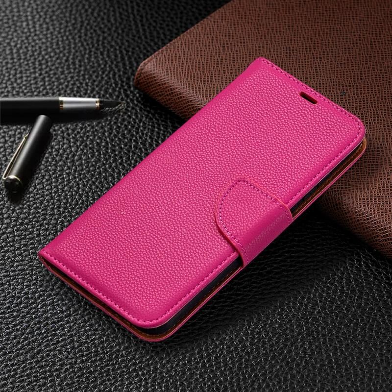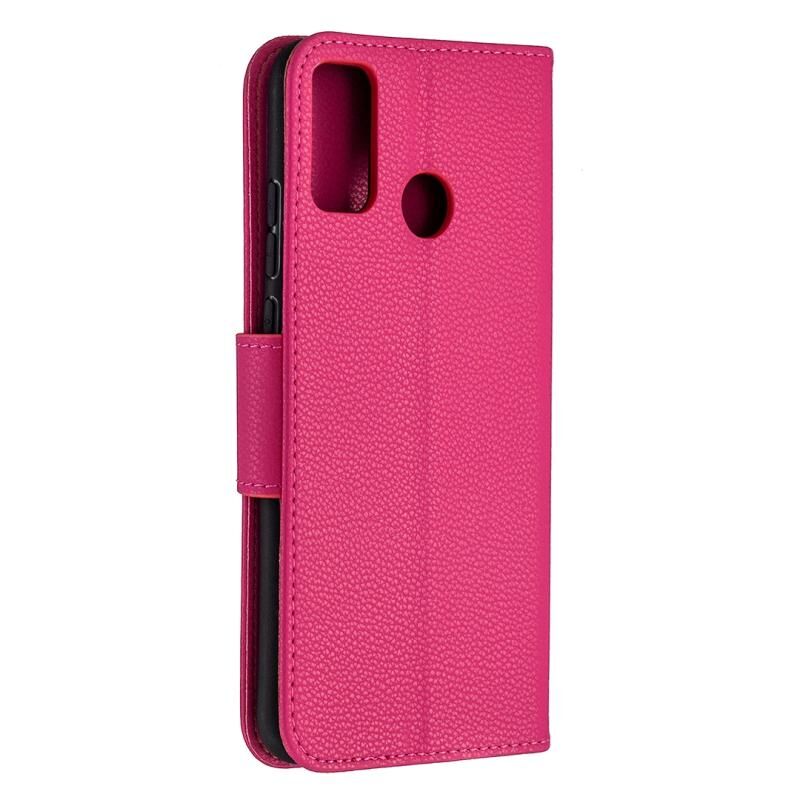 Για Huawei Honor 9X Lite Litchi υφή καθαρό χρώμα οριζόντια Flip PU δέρμα υπόθεση με θήκη & υποδοχές για κάρτες & πορτοφόλι & κορδόνι (Ροζέ κόκκινο)