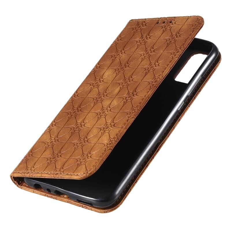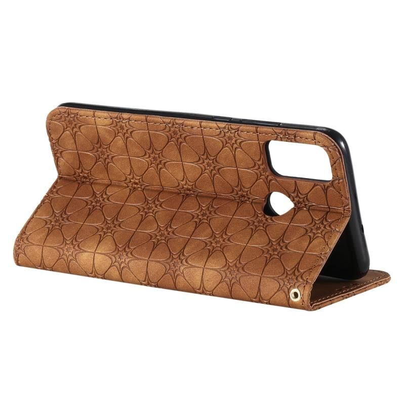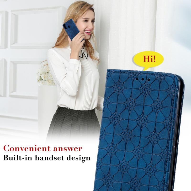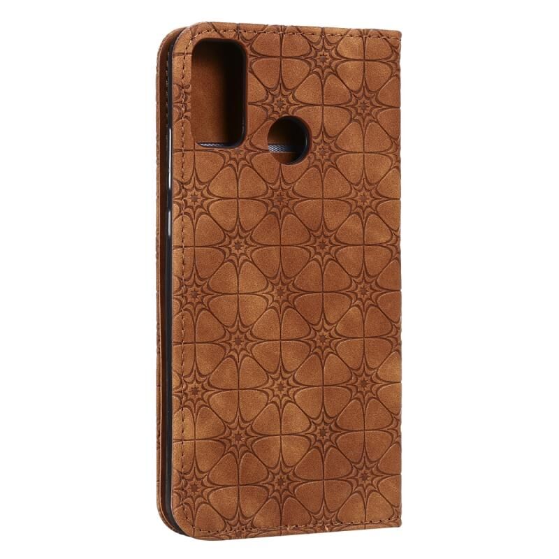 Θήκη Huawei Honor 9X Lite με μαγνητικό κλείσιμο, δερμάτινη, οριζόντια, με ανάγλυφο σχέδιο λουλουδιών, βάση στήριξης & θήκες για κάρτες (Μωβ)