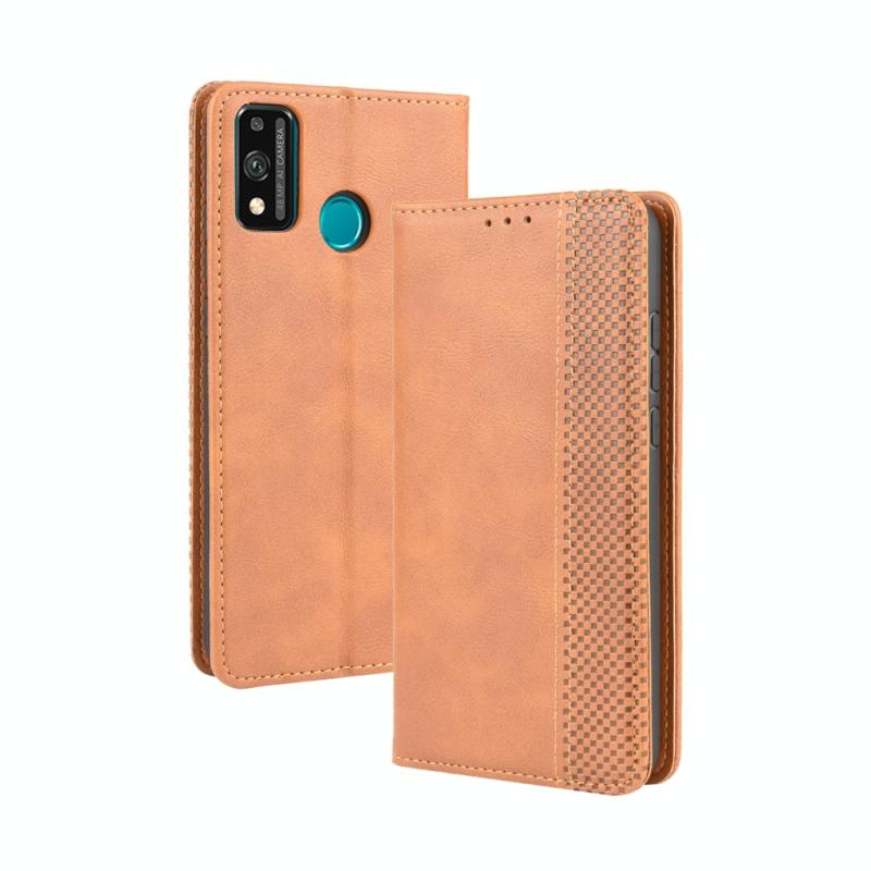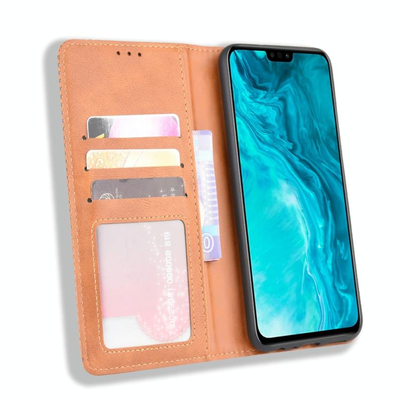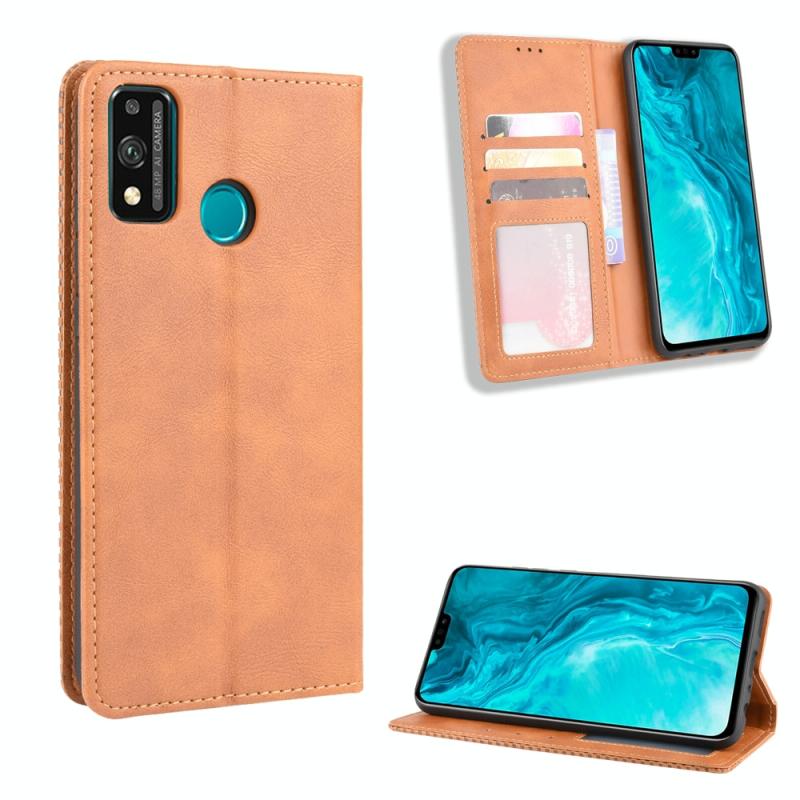 For Huawei Honor 9X Lite Magnetic Buckle Retro Crazy Horse Texture Horizontal Flip Leather Case , with Holder & Card Slots & Photo Frame(Brown)