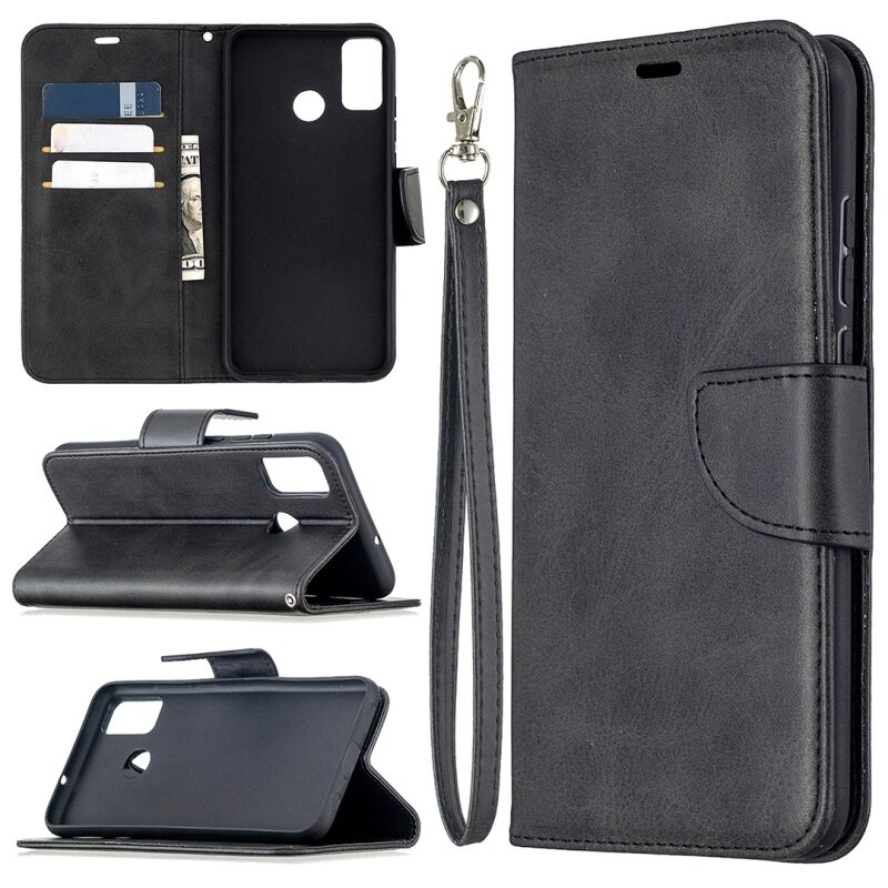 Για Huawei Honor 9X Lite Ρετρό Lambskin υφή καθαρό χρώμα οριζόντια Flip PU δέρμα υπόθεση με θήκη & υποδοχές για κάρτες & πορτοφόλι & κορδόνι (μαύρο)