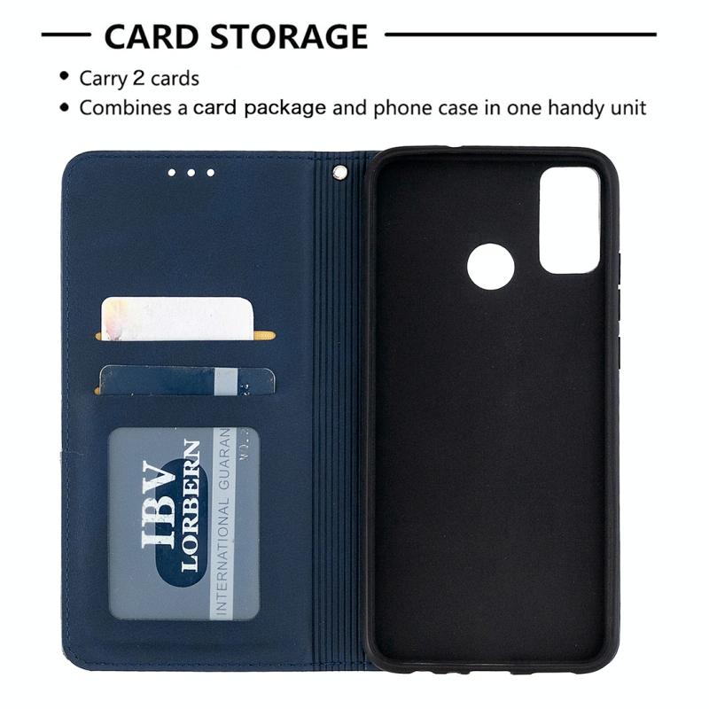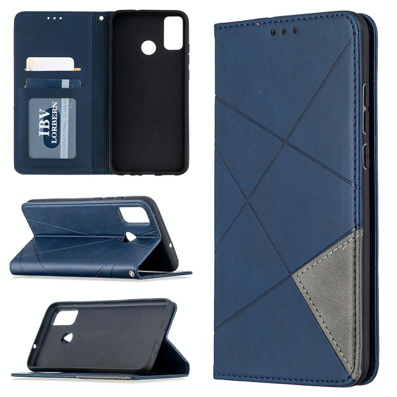 For Huawei Honor 9X Lite Rhombus Texture Horizontal Flip Magnetic Leather Case with Holder & Card Slots & Wallet(Blue)