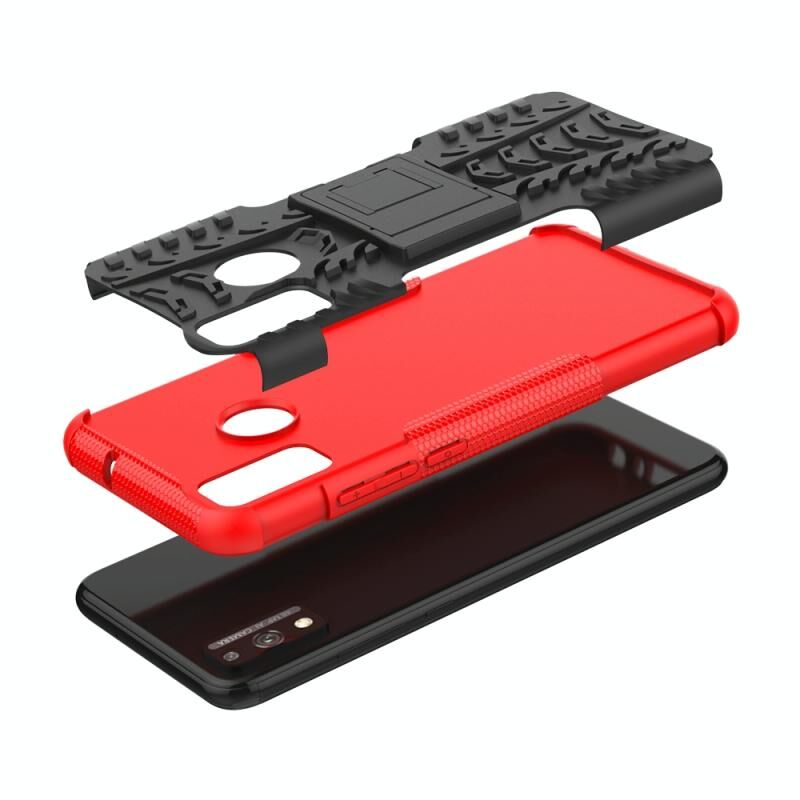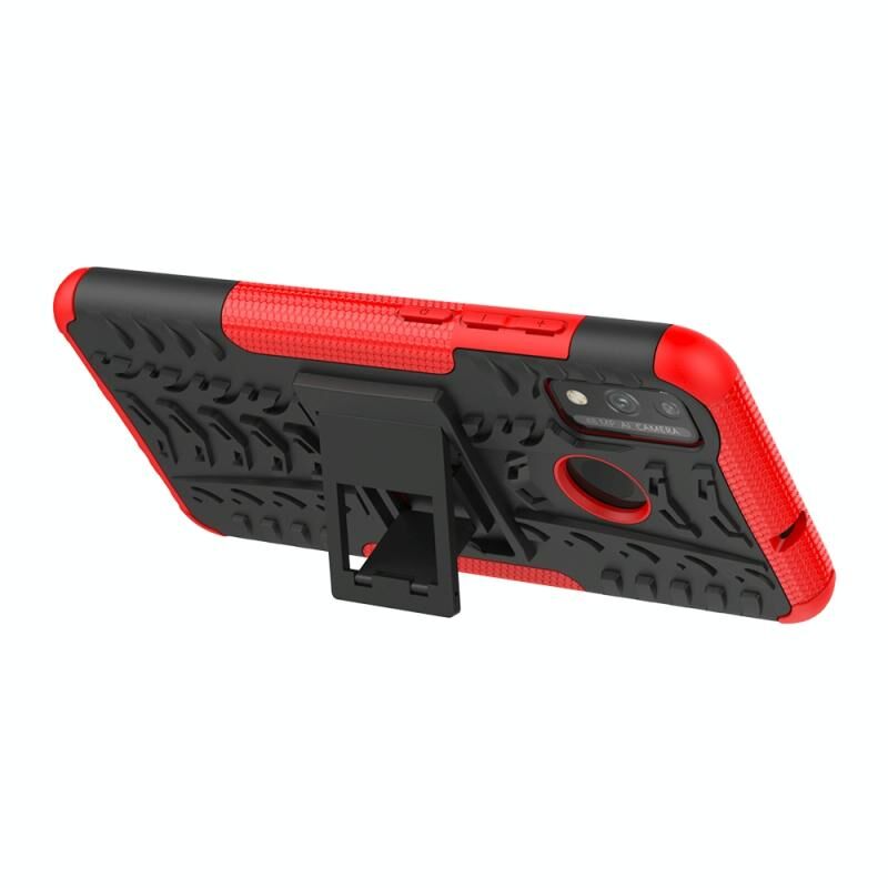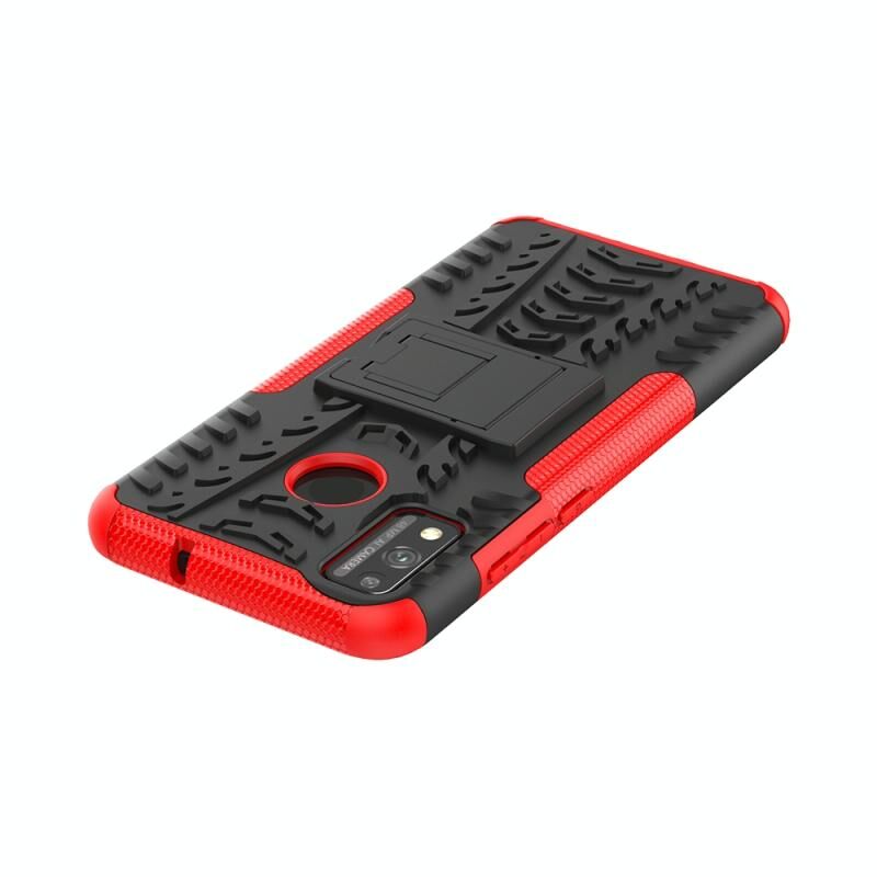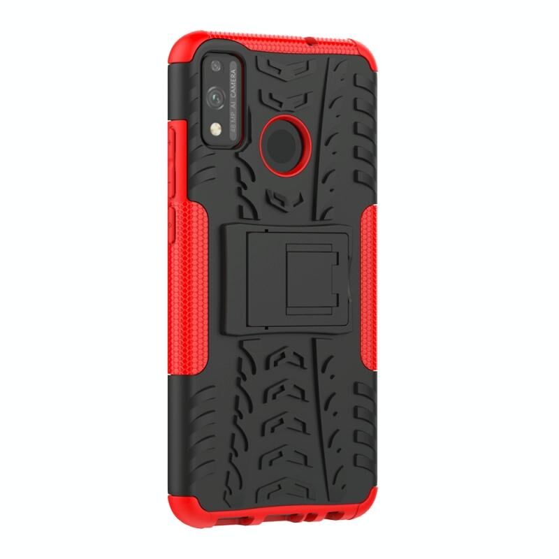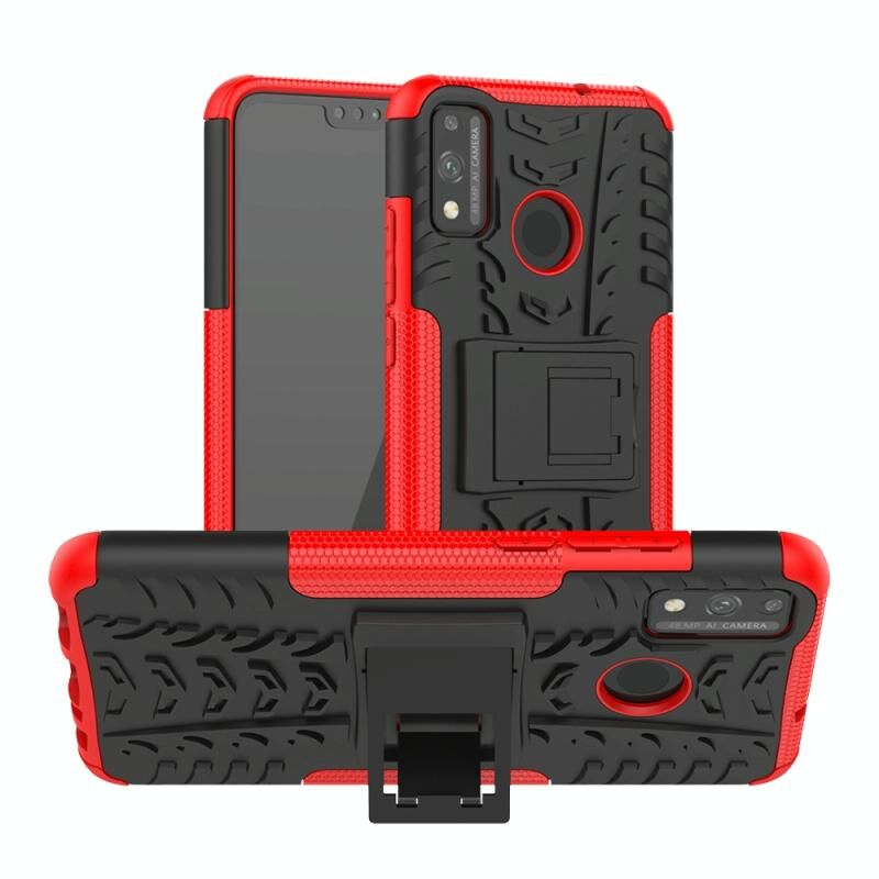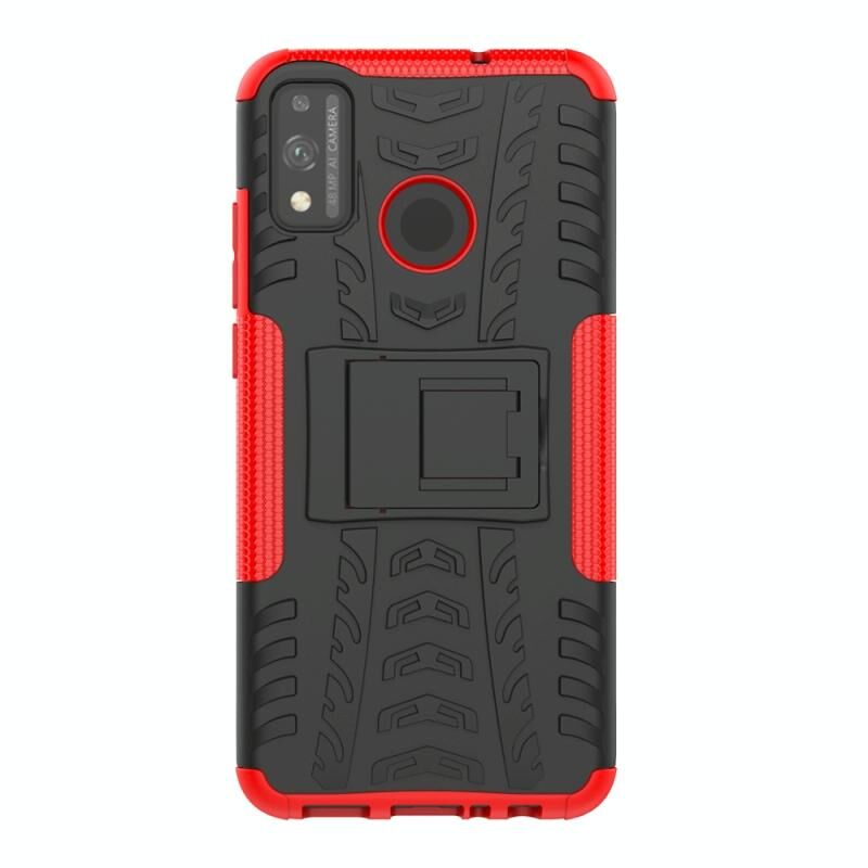 Για Huawei Honor 9X Lite Tire / Honor 8X Texture Shockproof TPU + PC προστατευτική θήκη με κάτοχο (Κόκκινο)