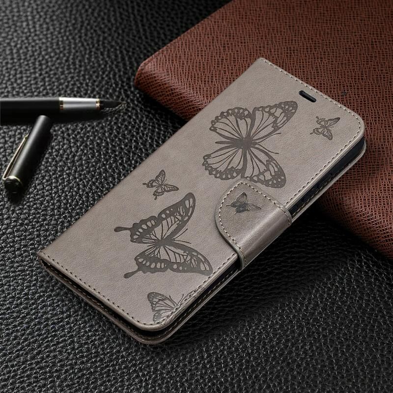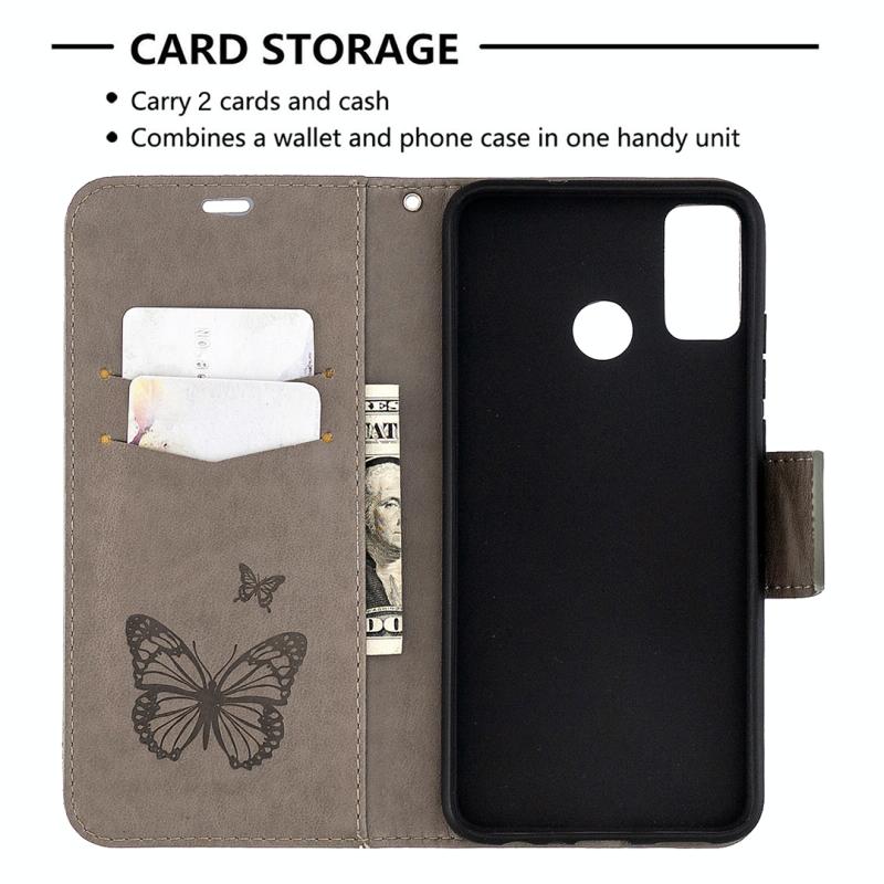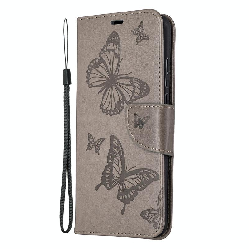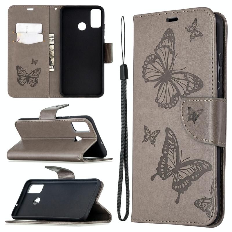 For Huawei Honor 9X Lite Two Butterflies Embossing Pattern Horizontal Flip Leather Case with Holder & Card Slot & Wallet & Lanyard(Grey)