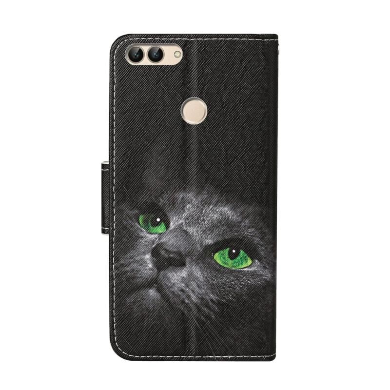 Θήκη δέρματος οριζόντιας αναδίπλωσης με σχέδια πολύχρωμης ζωγραφικής για Huawei Honor Enjoy 7S με βάση στήριξης & υποδοχές καρτών & πορτοφόλι (Μαύρο Αστέρι Πέντε Άκρων)