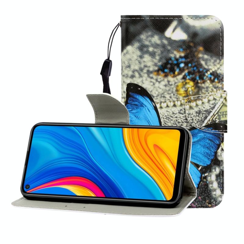 Θήκη δέρματος οριζόντιας αναδίπλωσης με σχέδιο (πεταλούδα) για Huawei Honor Play 3 / Enjoy 10, με βάση στήριξης, θήκη για κάρτες και πορτοφόλι. (Κόκκινο)