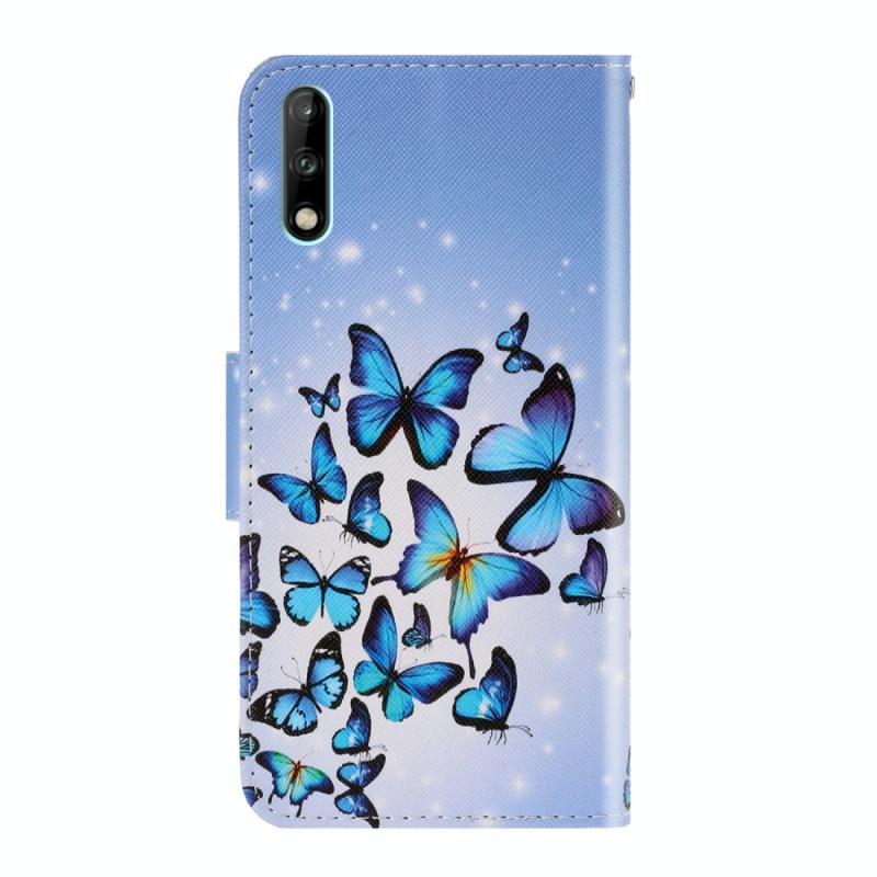 Θήκη δέρματος οριζόντιας αναδίπλωσης με σχέδια πολύχρωμης ζωγραφικής για Huawei Honor Play 3 / Enjoy 10 με βάση στήριξης & υποδοχή κάρτας & πορτοφόλι (Κόκκινο)