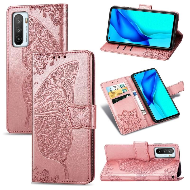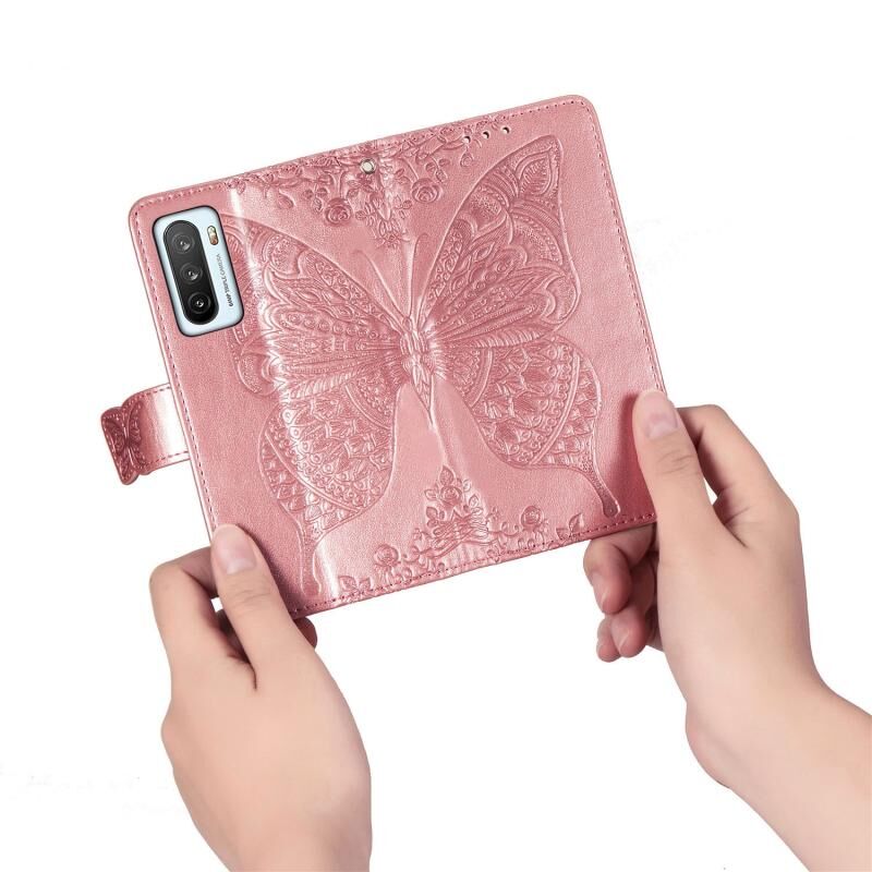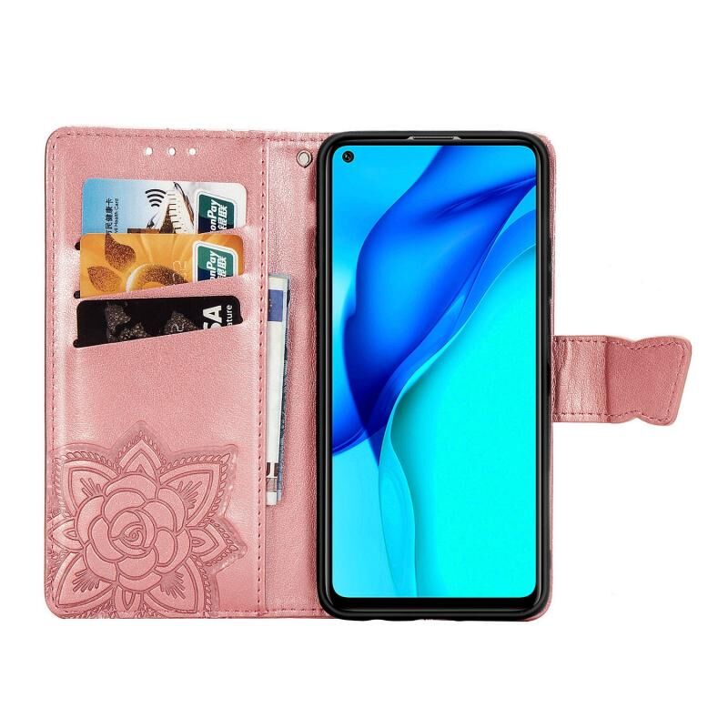 Θήκη δέρματος οριζόντιας αναδίπλωσης για Huawei Honor Play 4 Butterfly Love Flower με ανάγλυφο σχέδιο, με βάση / υποδοχή κάρτας / πορτοφόλι / κορδόνι (Μαύρο)