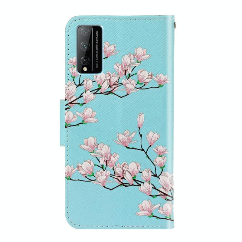Θήκη δέρματος οριζόντιας αναδίπλωσης με σχέδιο και χρώματα για Huawei Honor Play 4T Pro, με βάση στήριξης & υποδοχή κάρτας & πορτοφόλι (Μαγνολία)