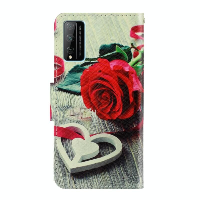 Θήκη δέρματος οριζόντιας αναδίπλωσης με σχέδιο και χρώματα για Huawei Honor Play 4T Pro, με βάση στήριξης & υποδοχή κάρτας & πορτοφόλι (Κόκκινο Τριαντάφυλλο)