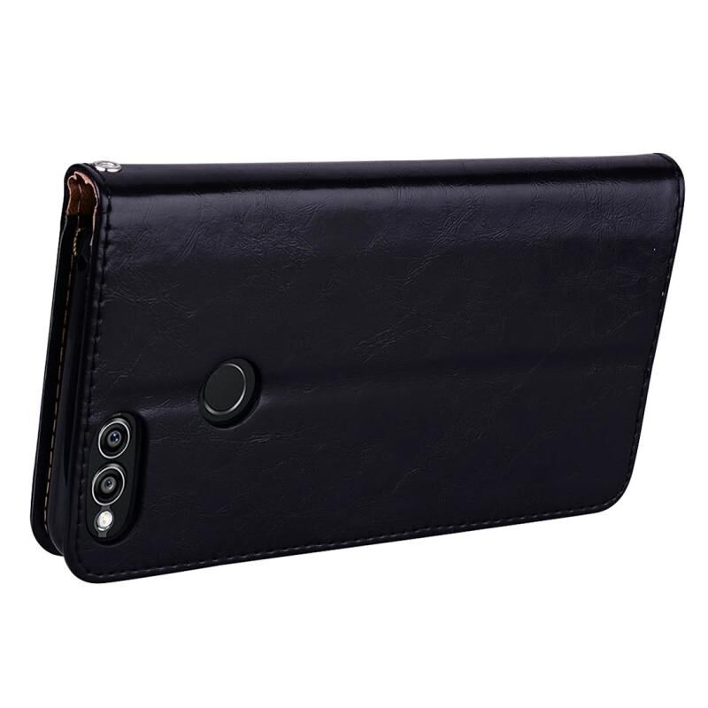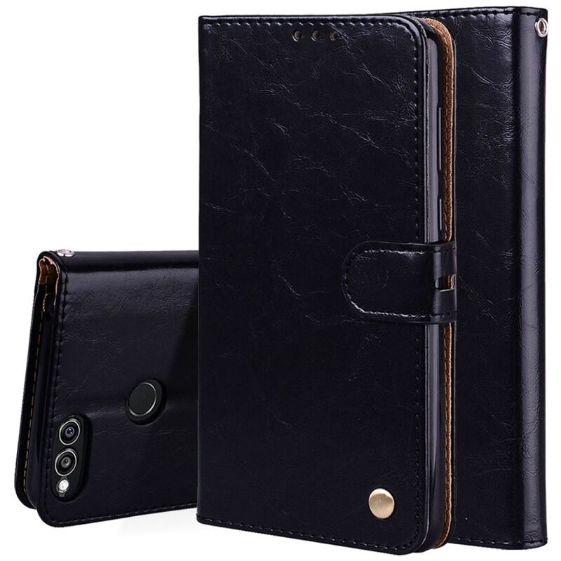 Για Huawei Honor Play 7X Business Style Oil Wax Texture Οριζόντια Flip δερμάτινη θήκη με θήκη & υποδοχές καρτών & πορτοφόλι (μαύρο)