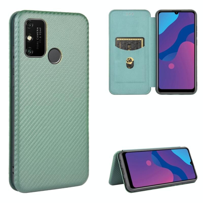 Για Huawei Honor Play 9A Carbon Fiber υφή οριζόντια Flip TPU + PC + PU δέρμα υπόθεση με υποδοχή κάρτας (πράσινο)