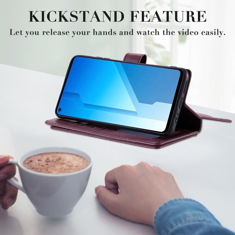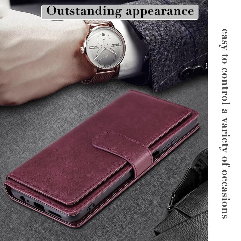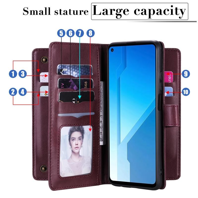Για Huawei Honor Play4 / Maimang 9 Πολυλειτουργική μαγνητική χάλκινη πόρπη οριζόντια Flip αμιγές χρώμα δερμάτινη θήκη με 10 υποδοχές για κάρτες & πορτοφόλι & θήκη & κορνίζα φωτογραφιών (κόκκινο κρασί)