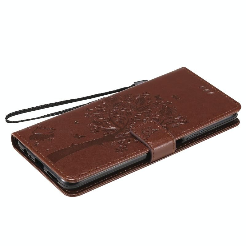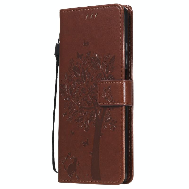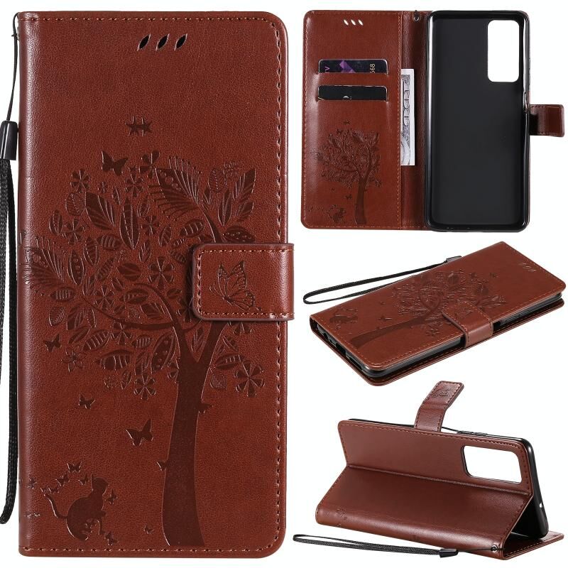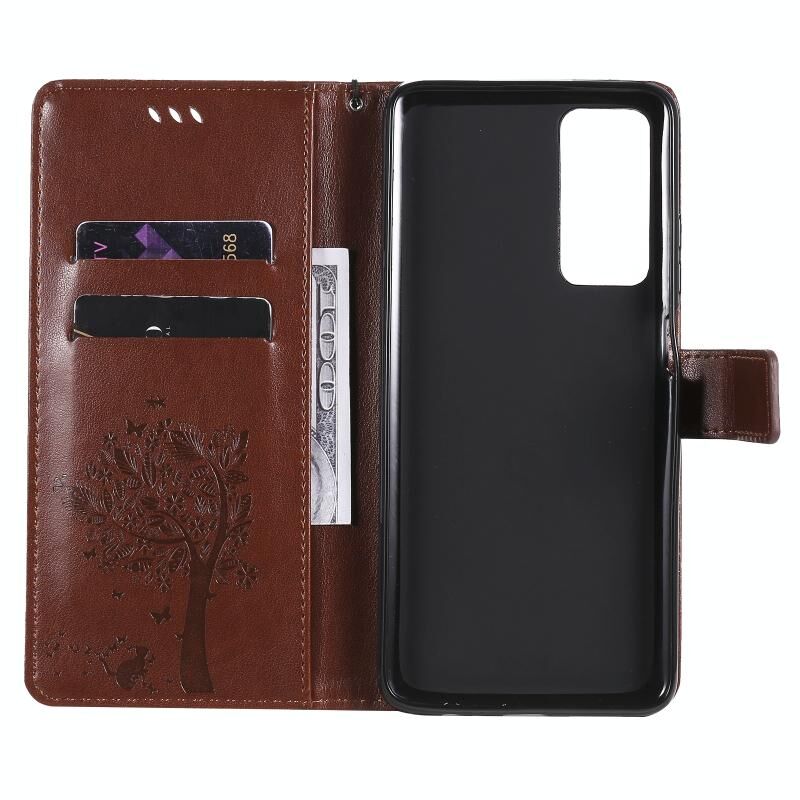 Θήκη Huawei Honor Play4 με σχέδιο Δέντρου & Γάτας, εκτύπωση με πίεση, οριζόντια αναδιπλούμενη από δερματίνη PU με βάση στήριξης & υποδοχές καρτών & πορτοφόλι & κορδόνι (Πράσινο)