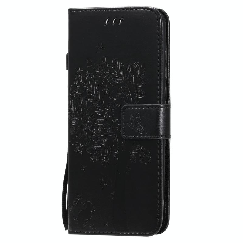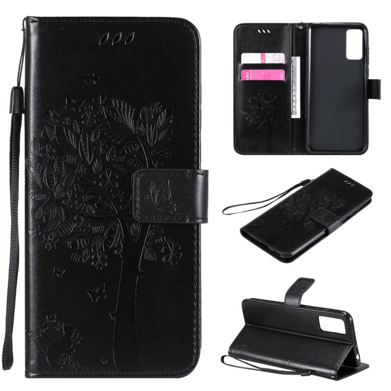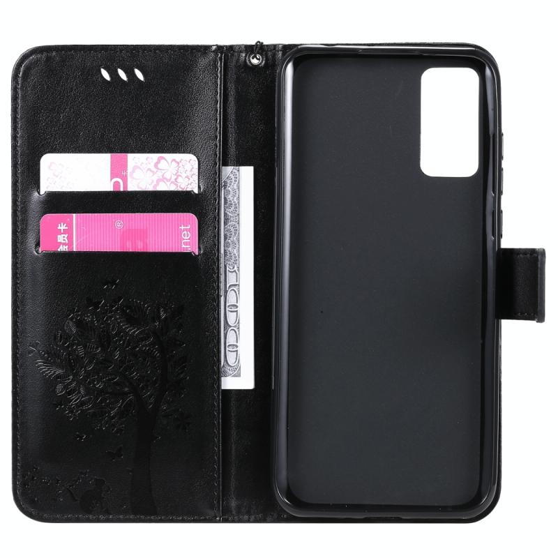 For Huawei Honor Play4T Pro Tree & Cat Embossed Pattern Horizontal Flip Leather Case with Holder & Card Slots & Wallet & Lanyard(Black)