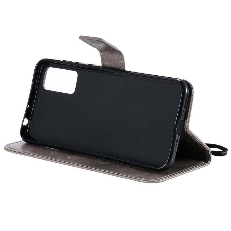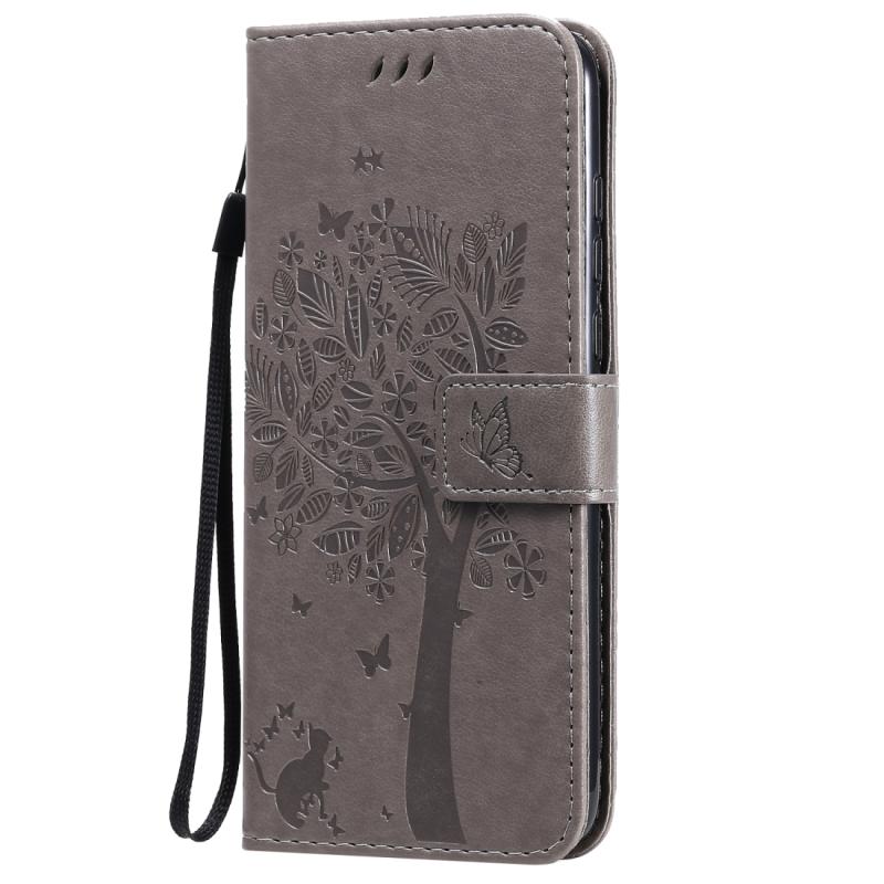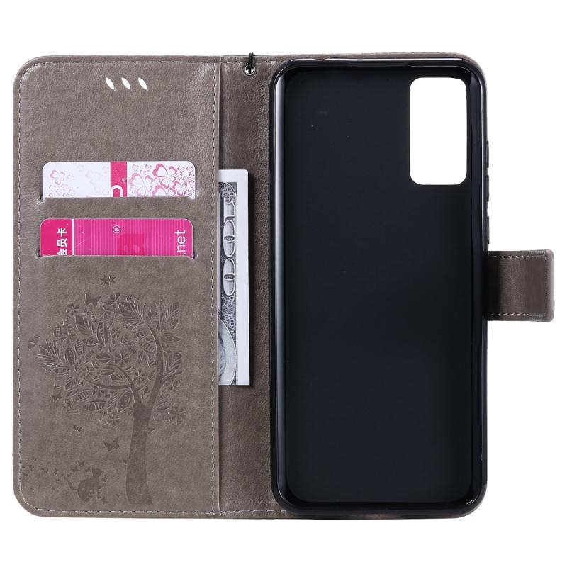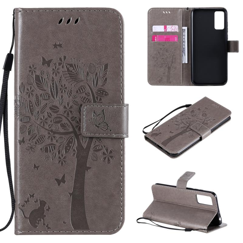 For Huawei Honor Play4T Pro Tree & Cat Embossed Pattern Horizontal Flip Leather Case with Holder & Card Slots & Wallet & Lanyard(Grey)